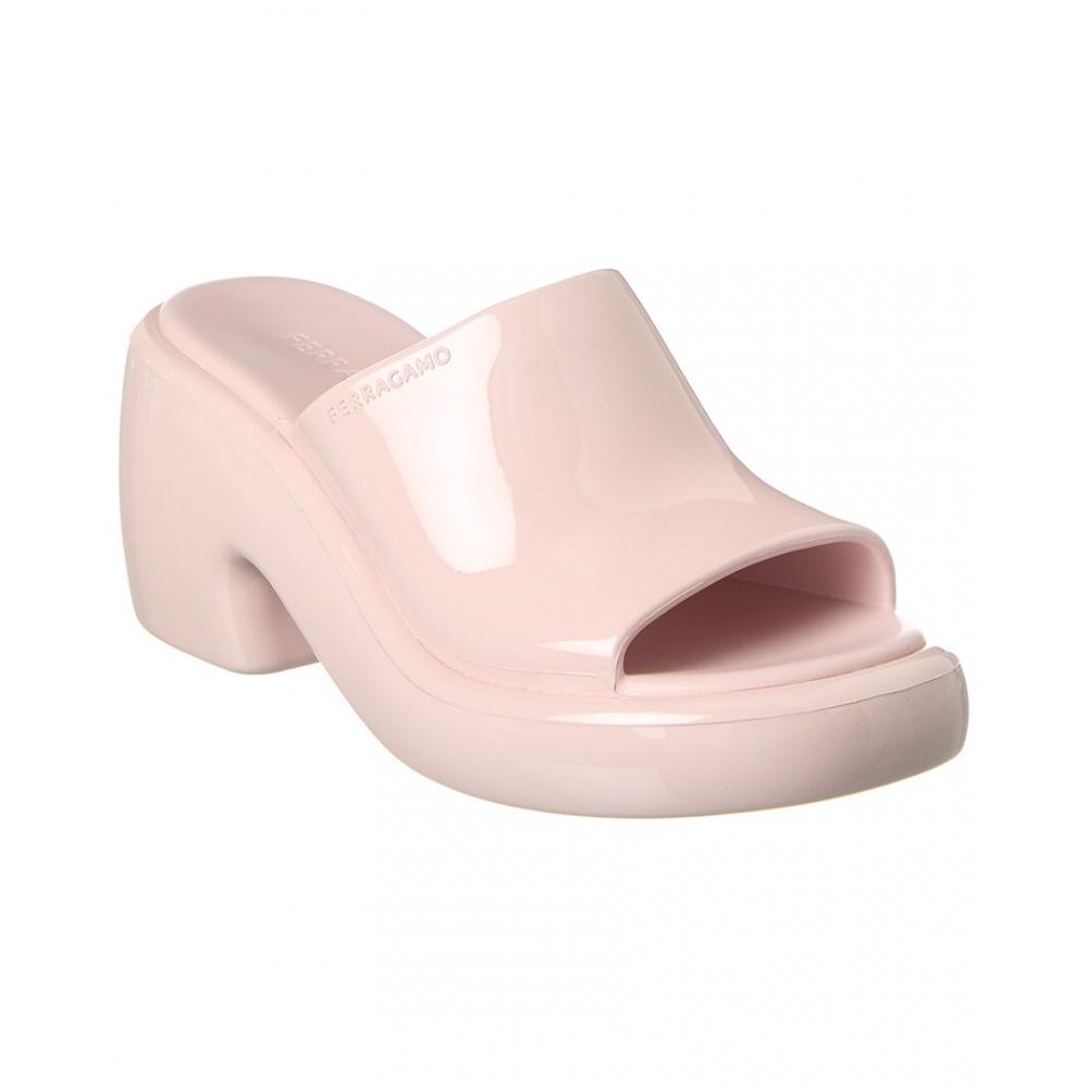 The Salvatore Ferragamo Deva 2 Rubber Sandal in Nylund Pink is designed to elevate your summer footwear collection. This stunning sandal features a sculptural design, a comfortable 3-inch heel, and a 1-inch platform. The smooth insole and man-made sole ensure all-day comfort and style, making it perfect for dressing up for special occasions or just running errands.