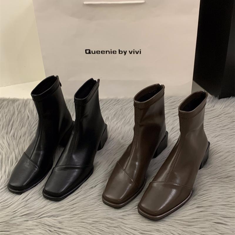 Мода Новые 2024 Эластичные носки Сапоги Женские Модные Ботильоны На Высоком Каблуке Толстый Каблук Квадратный Носок Короткие Сапоги Женские Ретро Ботильоны На Молнии — купить товар онлайн с бесплатной доставкой по всему миру!