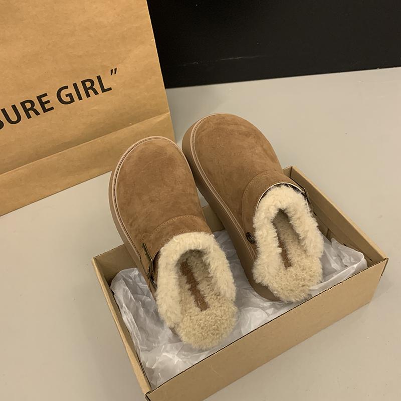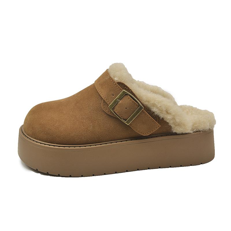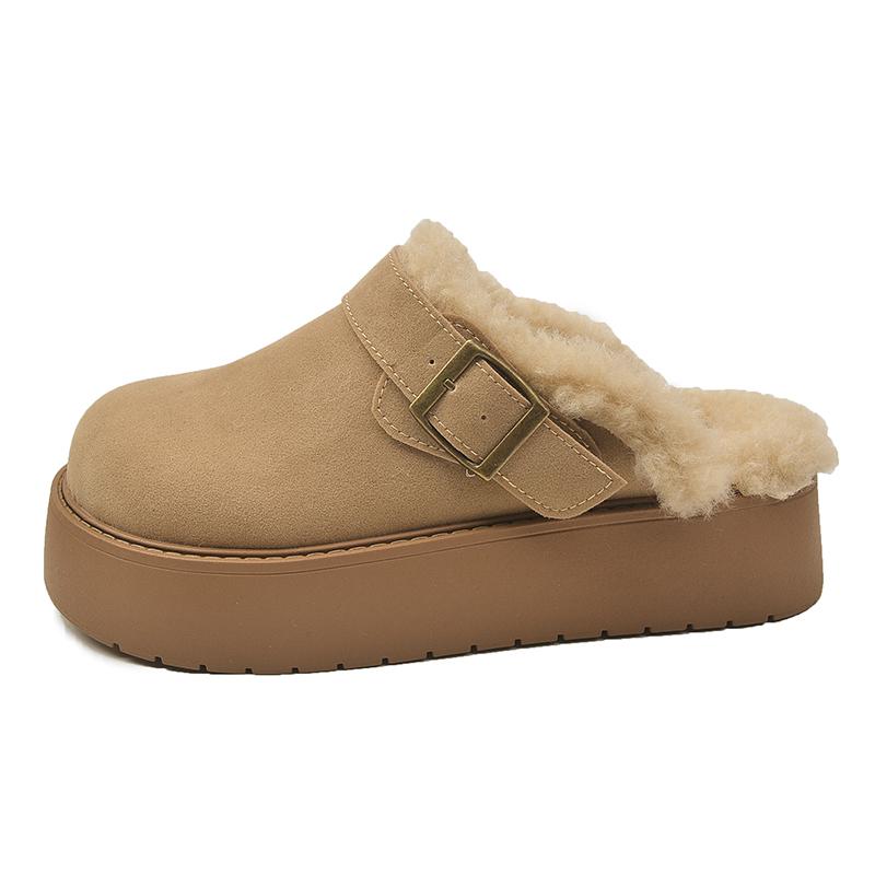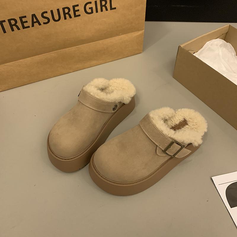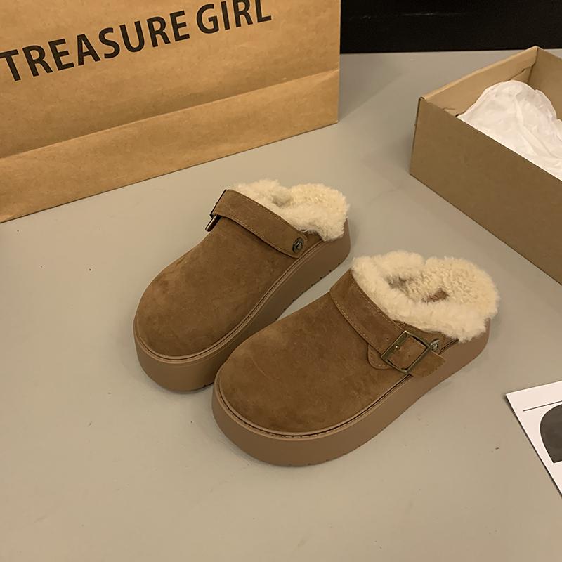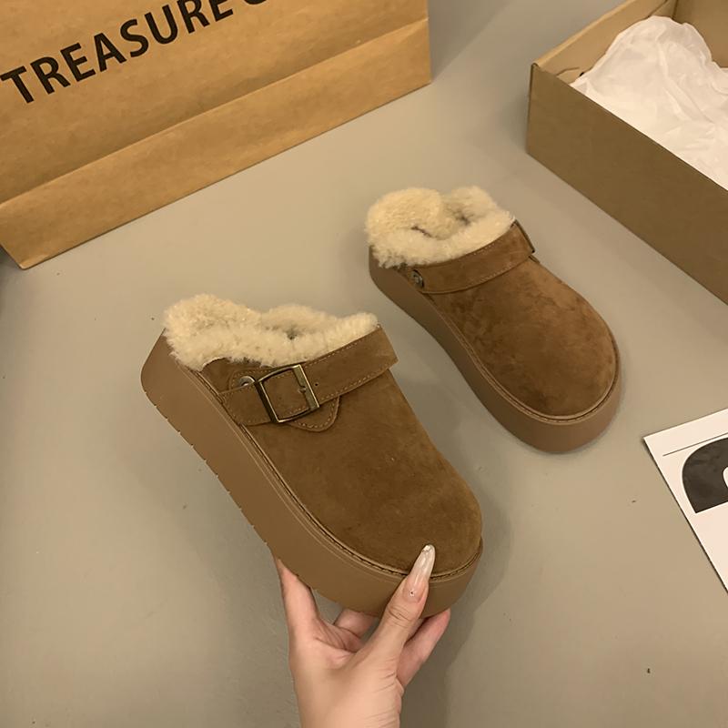 Мода 2024 Зима Новые Модные Круглые Головы Цельные Пряжки С Толстым Нижним Верхняя Одежда Женские Тапочки Из Хлопка Баотоу Для Женщин