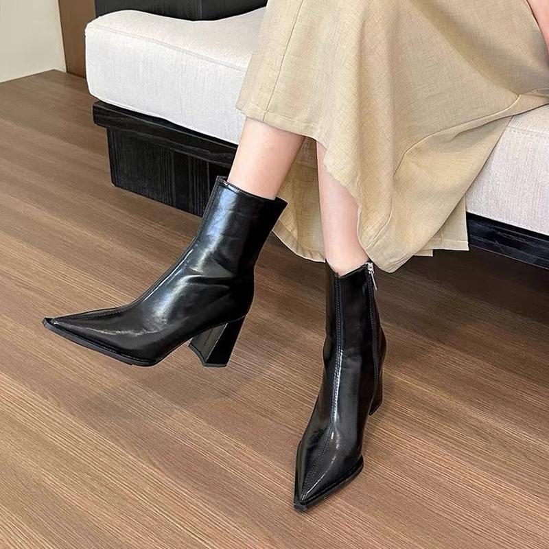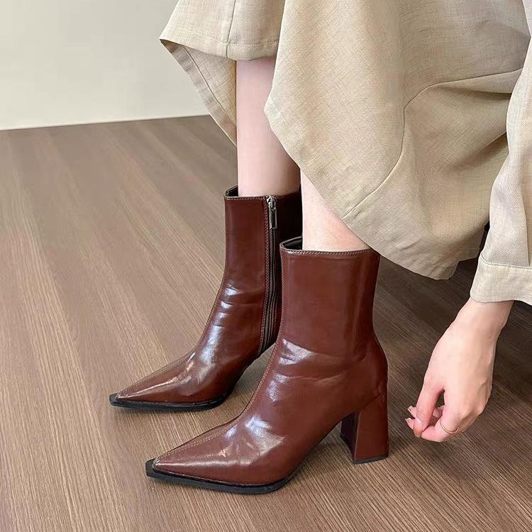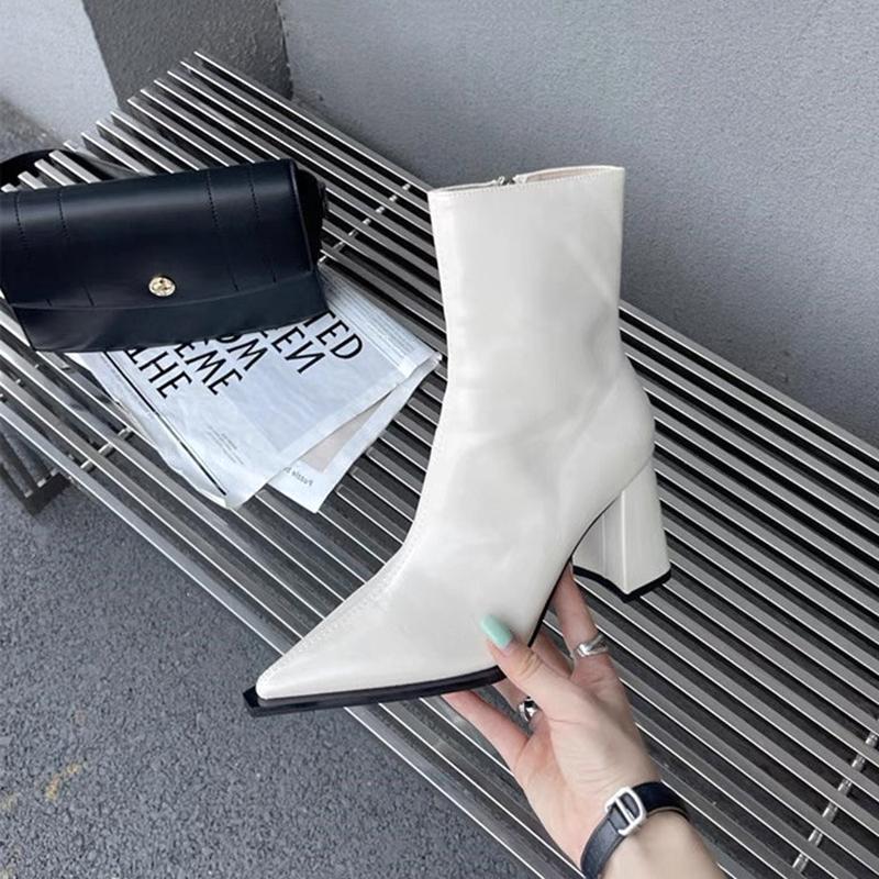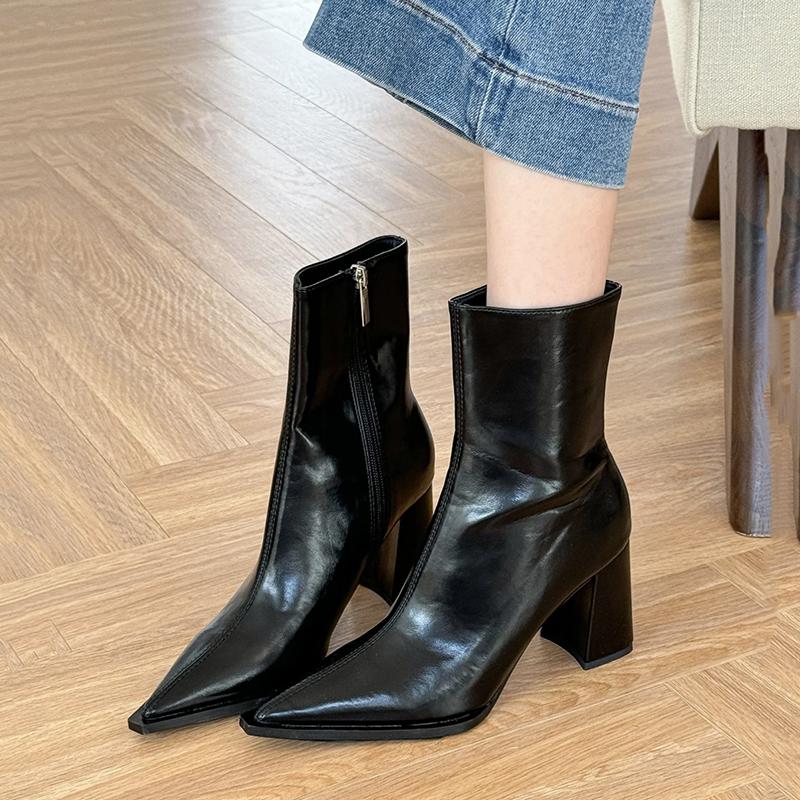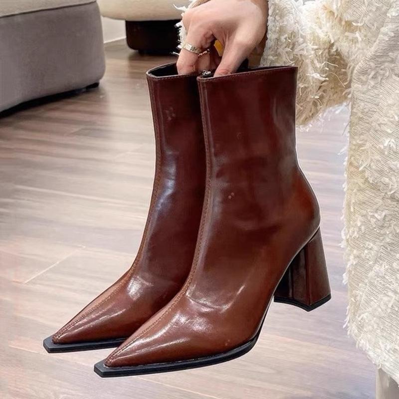 Модные зимние женские ботильоны, новые модные женские ботинки челси с заостренным носком и боковыми молниями, элегантные однотонные короткие ботинки на высоком каблуке