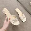 Мода 2024 года, лето, новая мода, открытый носок, однотонная простая кожаная поверхность, универсальные, карамельного цвета, большие тапочки, квадратный каблук, женская обувь
