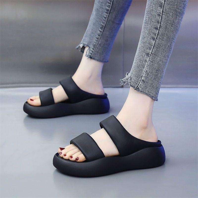 Модные женские тапочки, мягкие шлепанцы, черные сабо на пляжной обуви для женщин, высокие сандалии, корейский стиль, натуральная кожа, VIP, высокое качество, распродажа 39