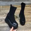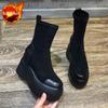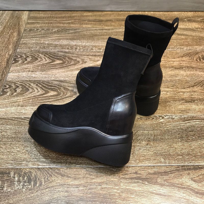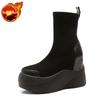 Модные ботильоны на толстой черной подошве, замшевые женские ботильоны на платформе, короткие туфли для женщин, эластичная рабочая обувь высокого качества, новинка 2024 года