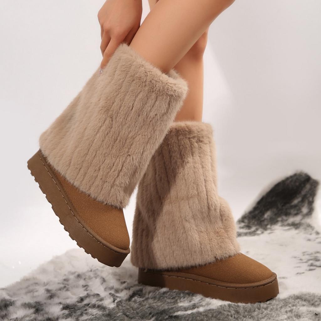 Модные новые зимние сапоги 2024 года до середины икры, толстые плюшевые толстые подошвы, нескользящие, модные однотонные хлопковые женские сапоги, коричневые зимние сапоги в стиле ретро