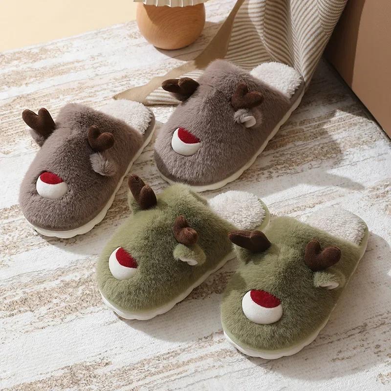 Модные женские тапочки David's deer 2024, зимние новые мультяшные домашние тапочки для пар, теплые нескользящие плюшевые хлопковые тапочки на толстой подошве