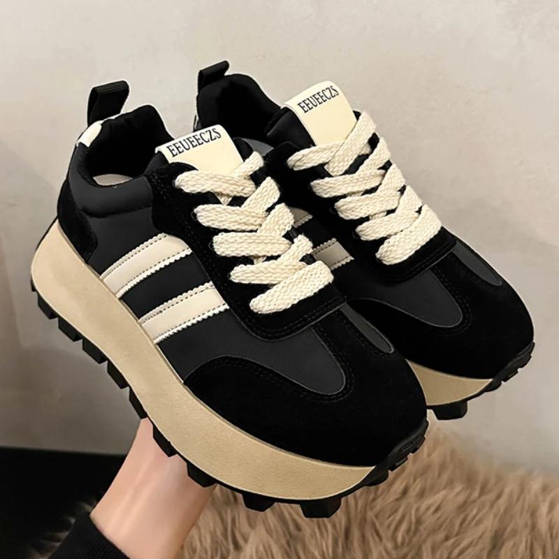 Новые черные женские повседневные кроссовки на платформе, винтажная универсальная обувь на толстой подошве для папы, модная дизайнерская спортивная обувь для отдыха на открытом воздухе
