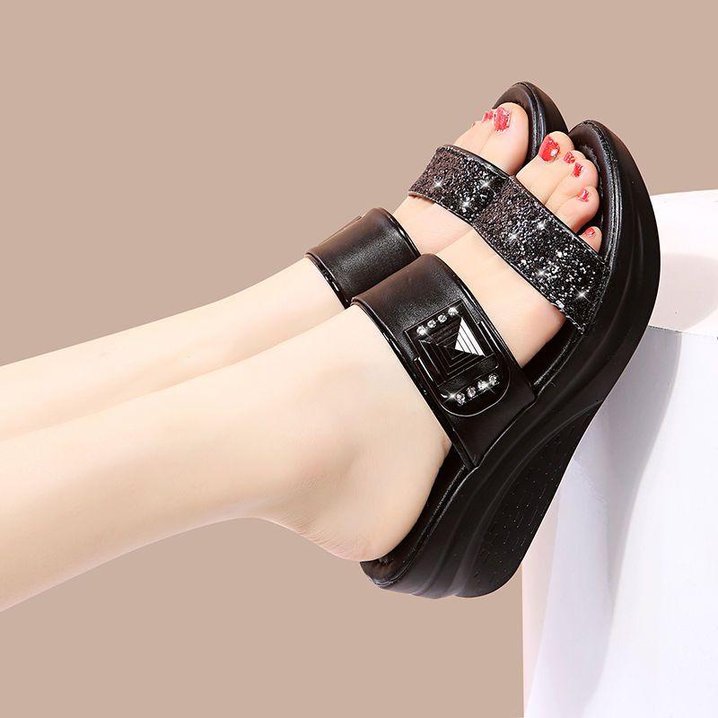Модные сандалии на танкетке, шлепанцы для улицы для женщин, золотые женские тапочки, уникальный маленький размер, тренд 2024, дешевая ликвидация на распродаже, VIP