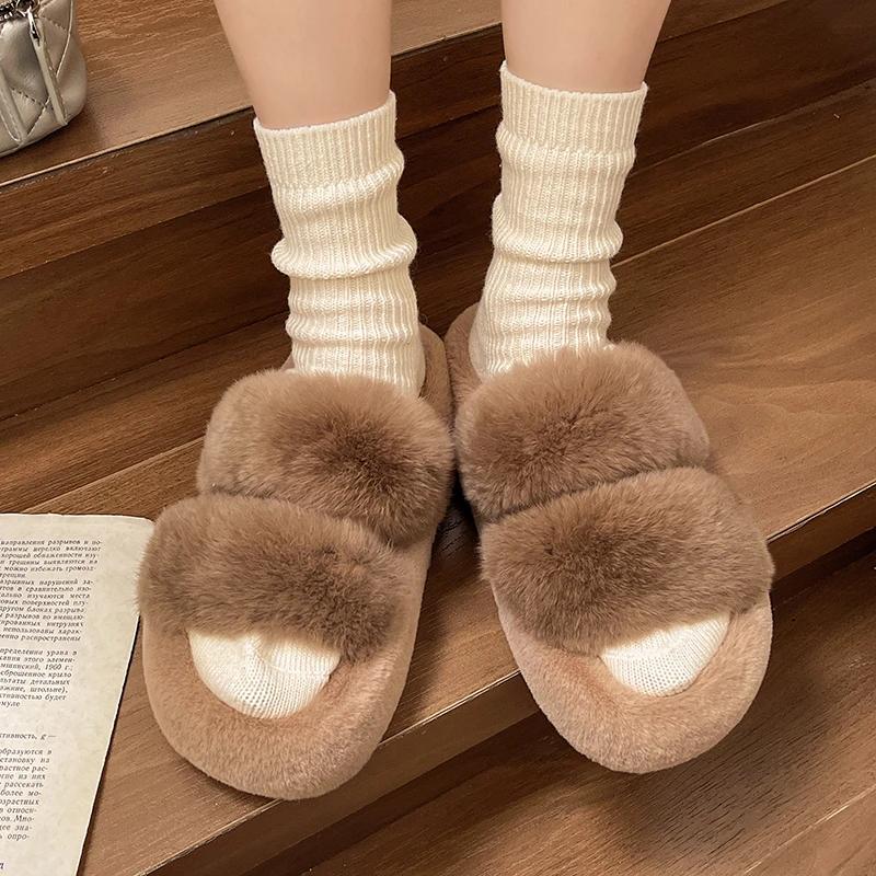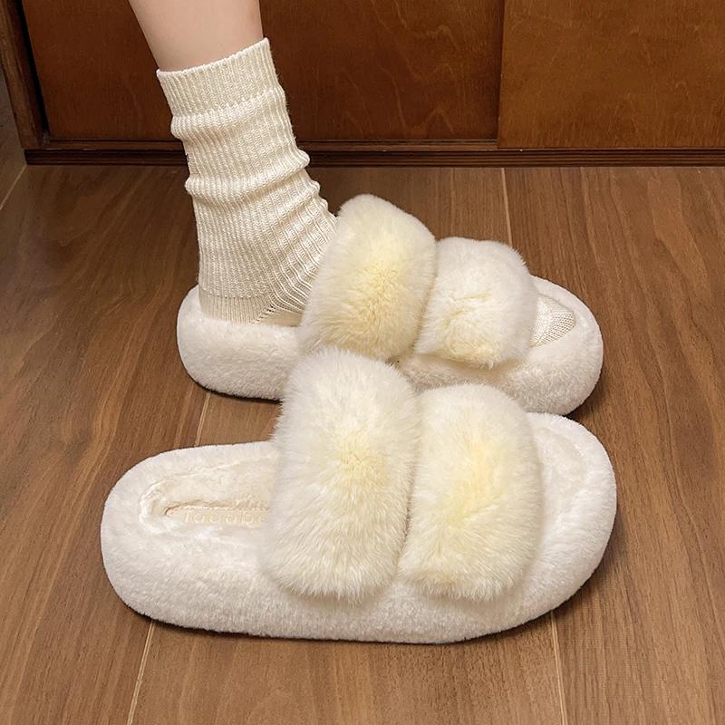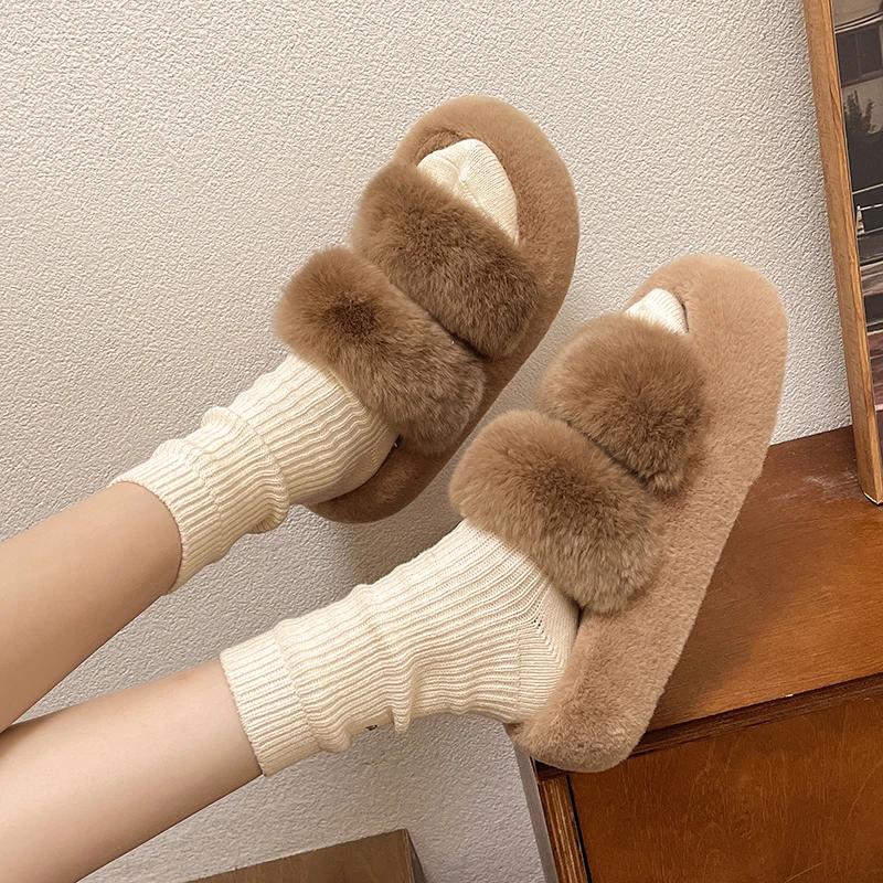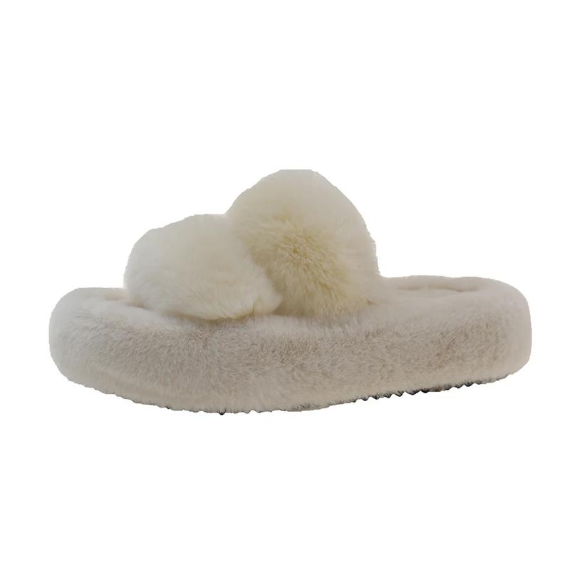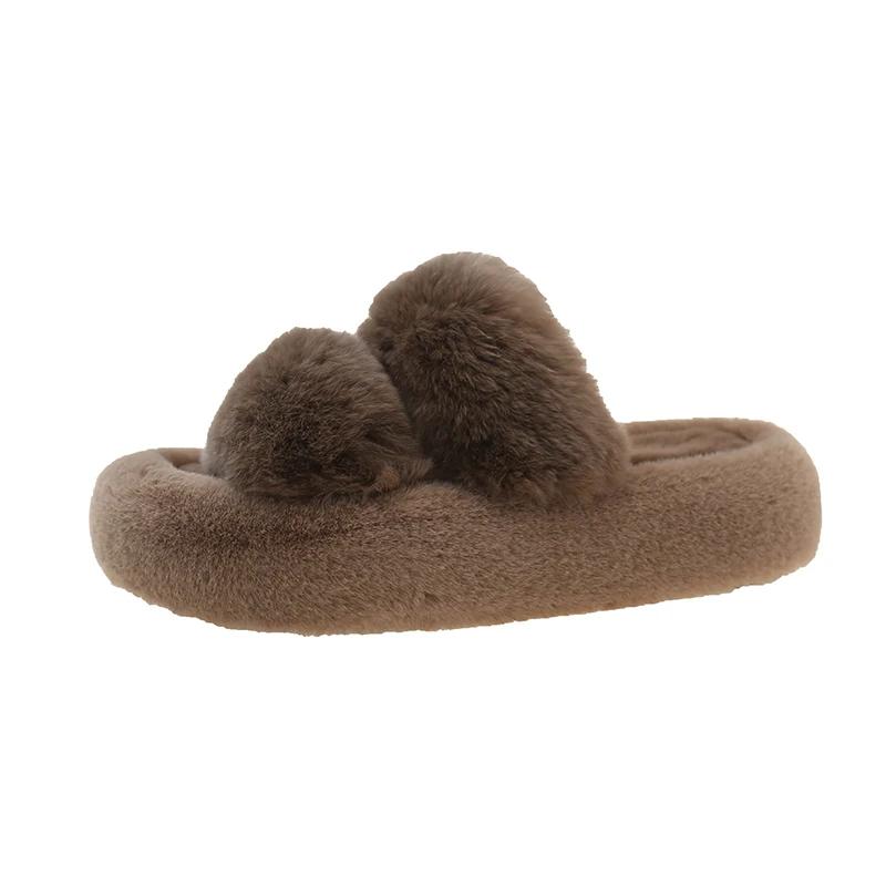 Модные зимние пушистые тапочки для женщин 2024 года, новые домашние меховые тапочки для женщин, плоская платформа, уютная пушистая домашняя обувь, корейские шлепанцы