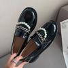 Модные женские туфли на плоской подошве из лакированной кожи с жемчугом и заклепками, нескользящие туфли-оксфорды на толстом каблуке, удобные женские туфли для офиса, лоферы для женщин — купить товар онлайн с бесплатной доставкой по всему миру!