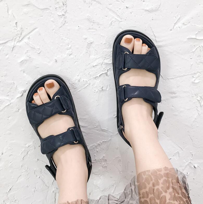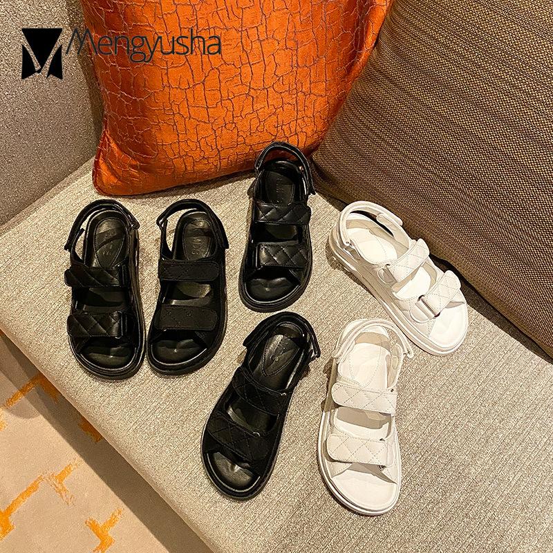 Модные брендовые сандалии в клетку для женщин на липучках, сандалии Lattic, женские сандалии на платформе из натуральной кожи, обувь из овчины для колледжей для девочек