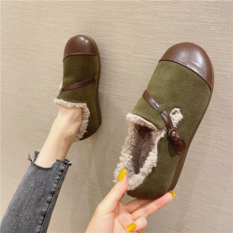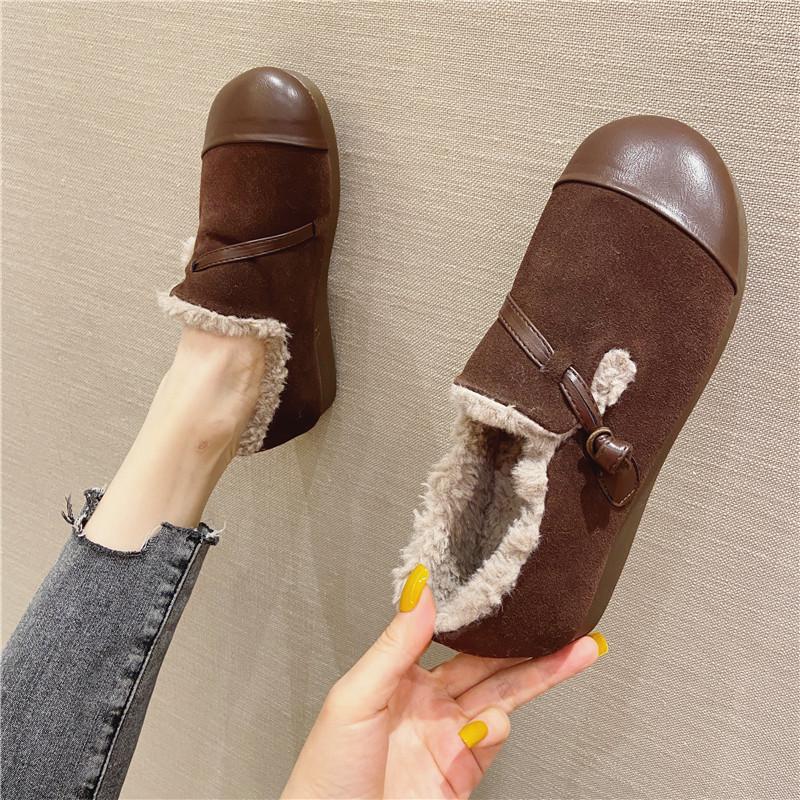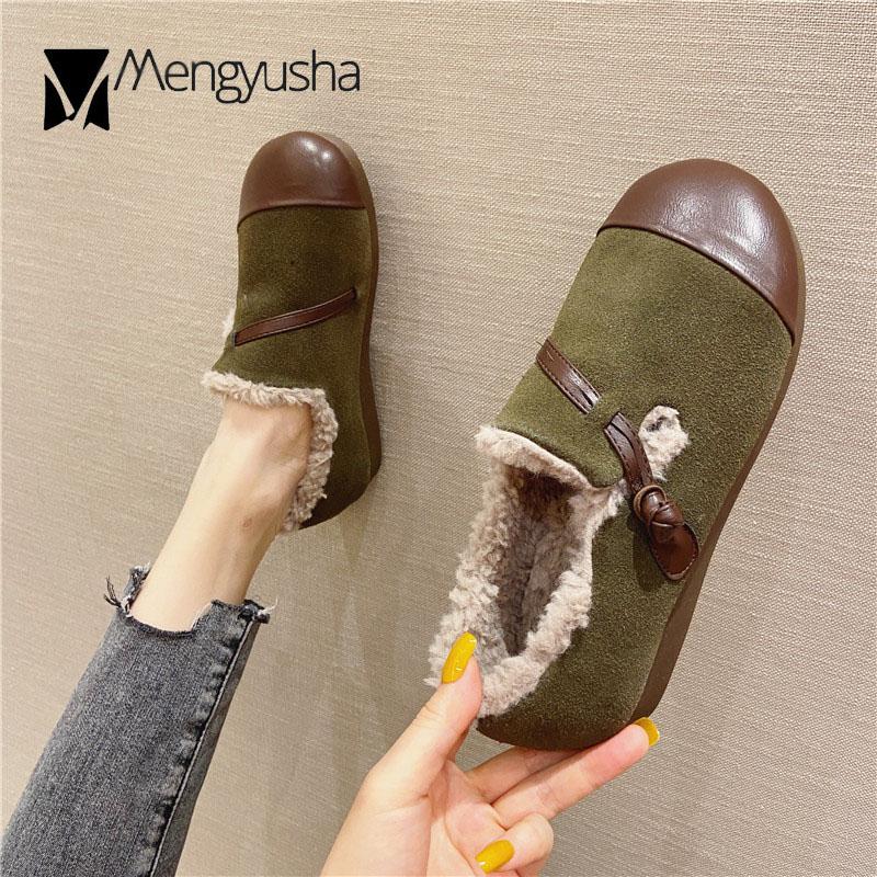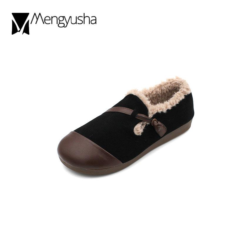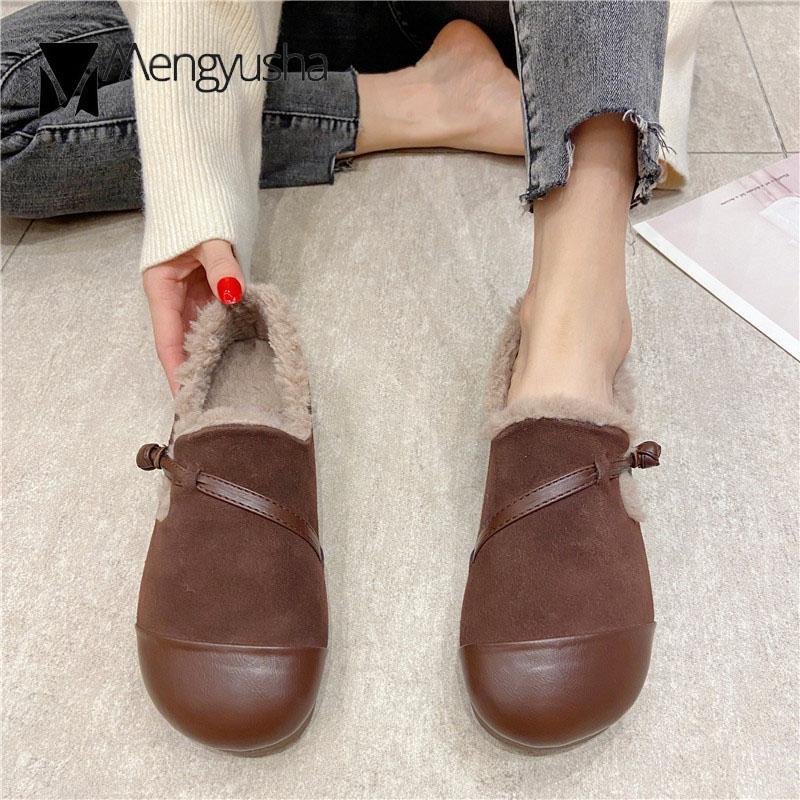 Модные плюшевые мокасины из нубука из коровьей кожи женские мокасины из натуральной кожи с узлом шнура зимние хлопковые туфли женские шерстяные меховые мокасины больших размеров