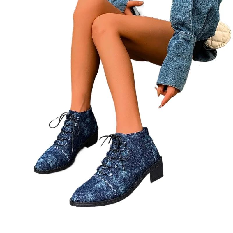 Мода 2024 года, высококачественная женская обувь, женские ботинки со шнуровкой спереди, модные современные ботинки с острым носком, женские новые женские ботинки больших размеров