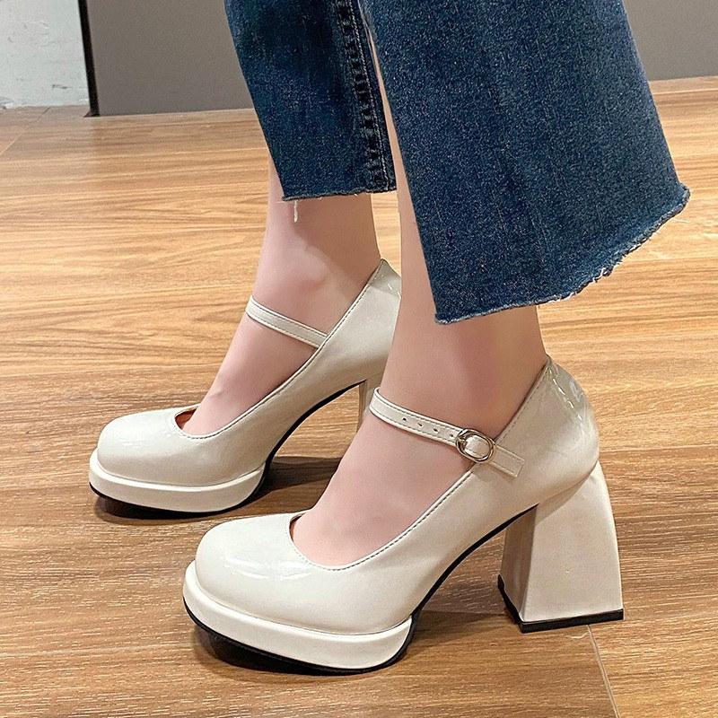 Мода 2024 года, новые туфли Мэри Джейн, женские туфли на высоком каблуке, элегантные туфли-лодочки с круглым носком и пряжкой на ремешке, женские летние туфли-лодочки на платформе для банкета и вечеринки