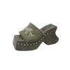 Мода 2024 года, новые готические тапочки на платформе для женщин, джинсовая бабочка, модный металлический дизайн, модные заклепки, слипоны, женская обувь в стиле панк, лето