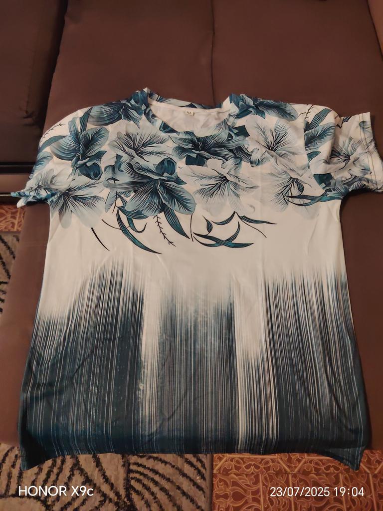 Хорошая летняя футболка😊 Приятная на теле. Заказала на размер больше, чтоб не была в обтяжку. Рисунок красивый, качеству все устраивает 👍