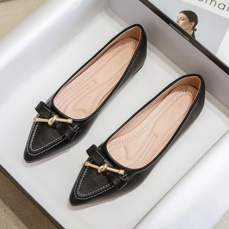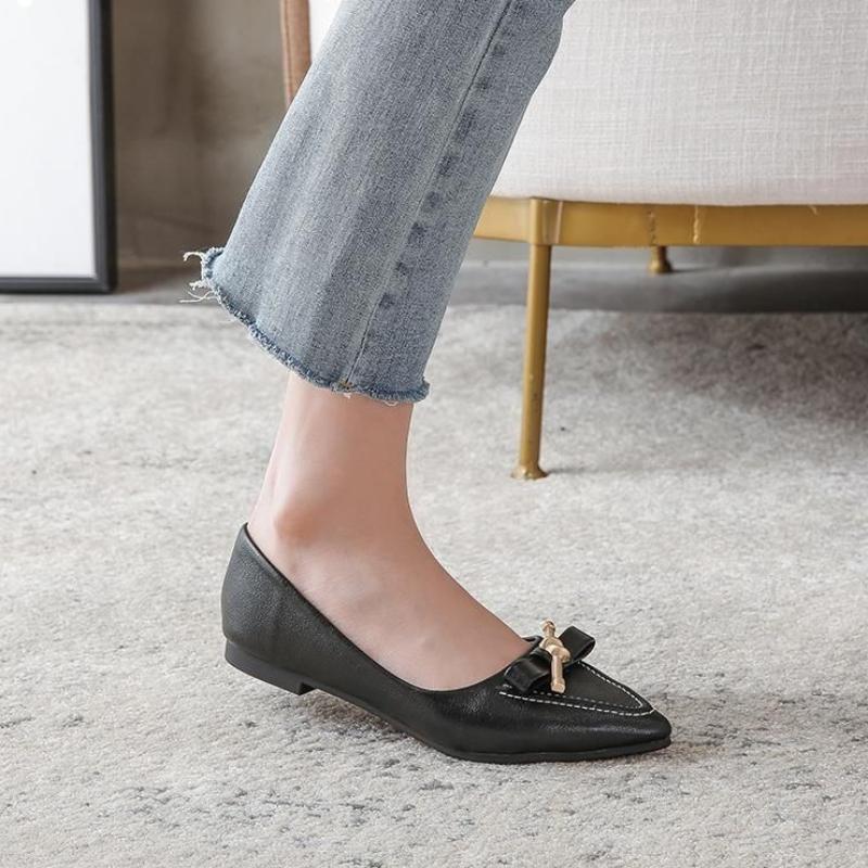 Модные повседневные туфли из обычной кожи с бантом для женщин 2024 года, черные мокасины с острым носком, женская летняя обувь на плоской подошве, офисная тенденция