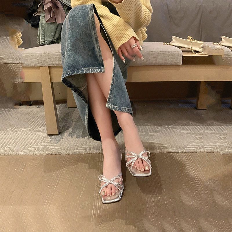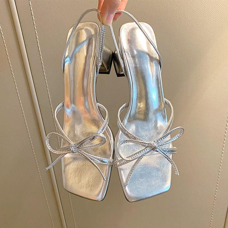 Модные босоножки на толстом каблуке, сексуальные, с серебристыми бриллиантами, летние 2024, хрустальные с ремешком, женская обувь, блочный массивный каблук, стразы, обувь F