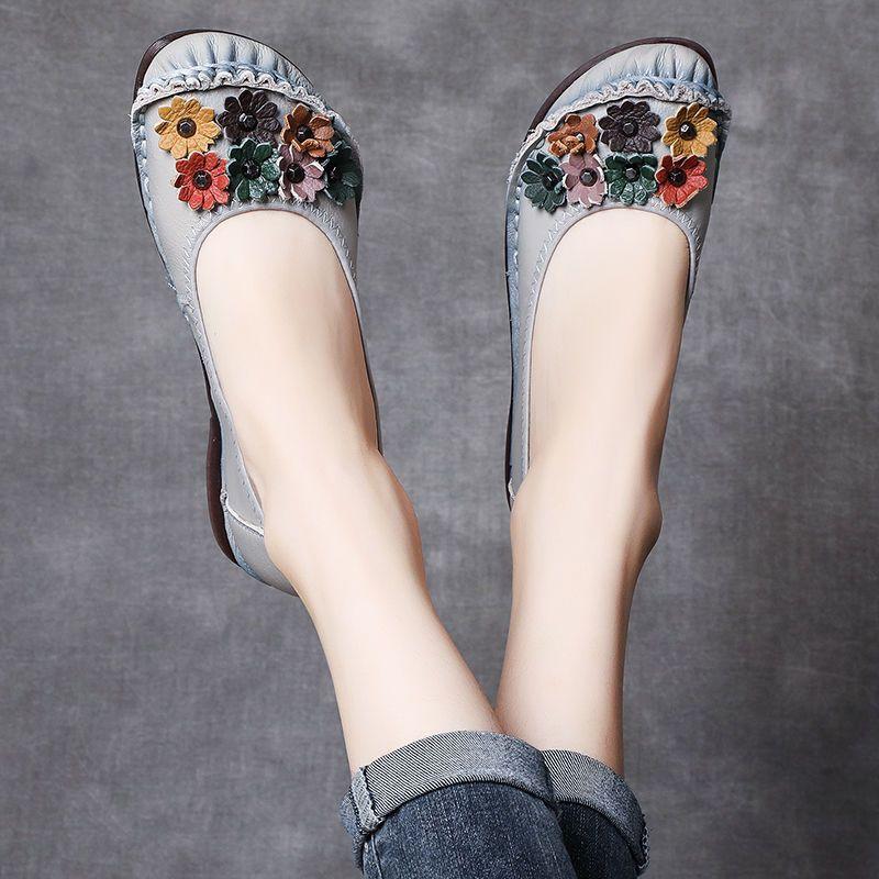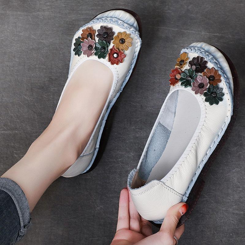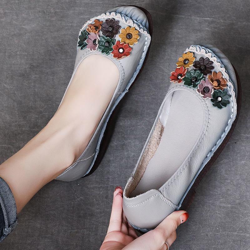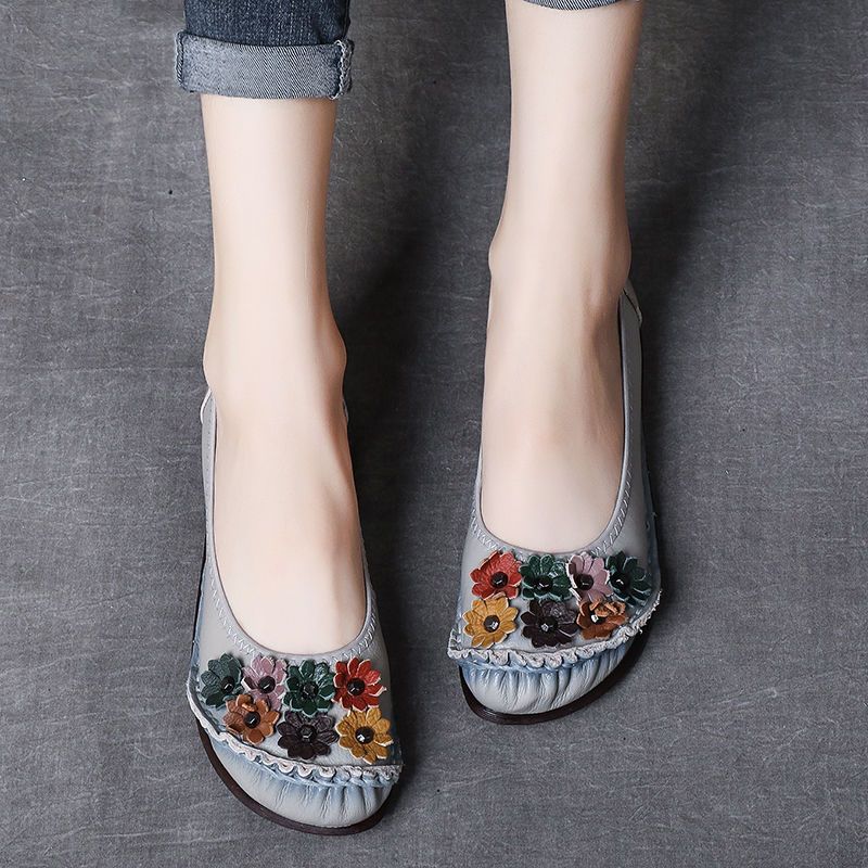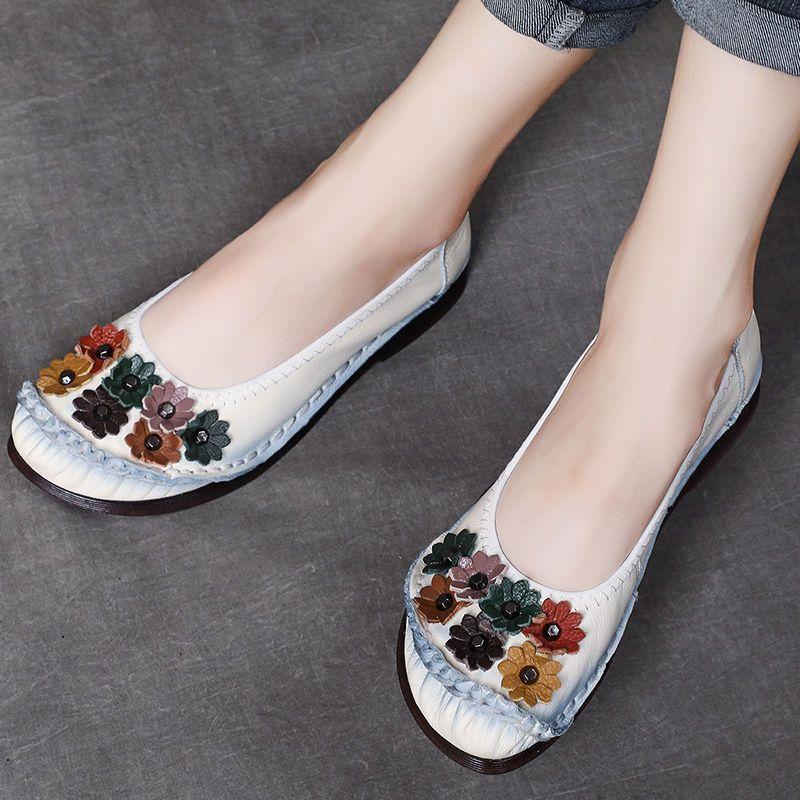 Весна Новое поступление кожаные женские лоферы балетки женские мокасины с цветочным принтом женские повседневные туфли на плоской подошве женские туфли-лоферы без застежек