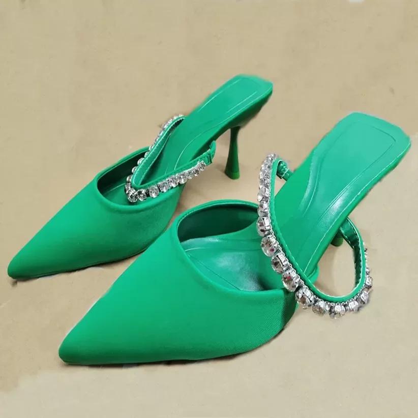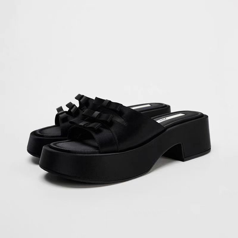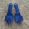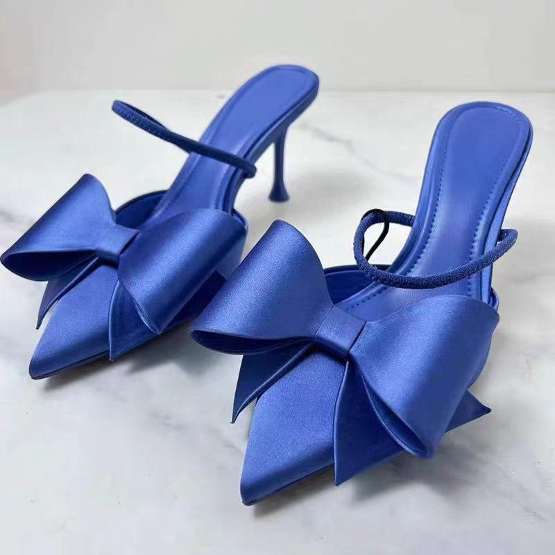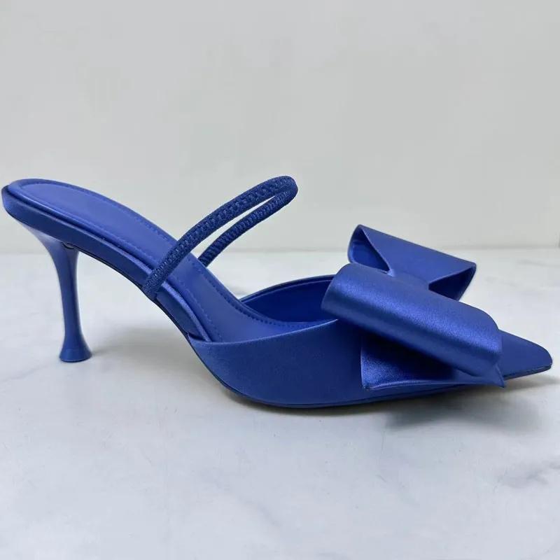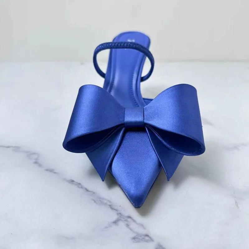 Туфли-лодочки TRAF женские синие с бантом на высоком каблуке, сексуальные, с острым носком, с открытой пяткой, босоножки на каблуках, летние, 2024, новые, элегантные, женские босоножки для вечеринок