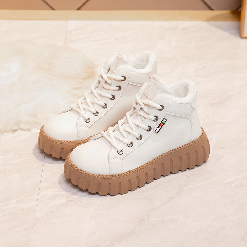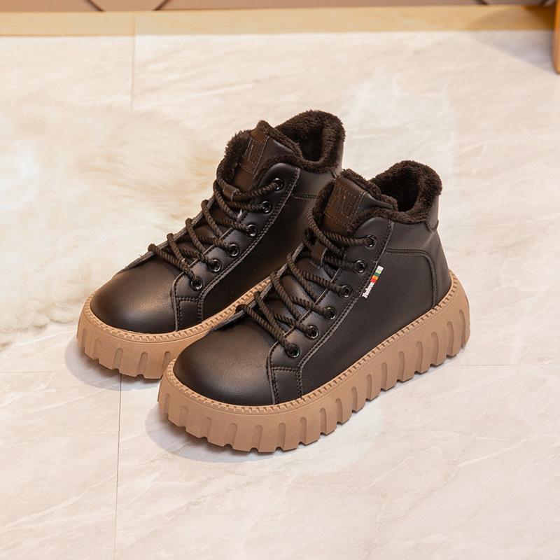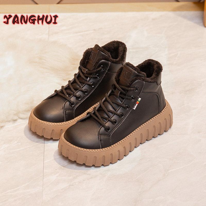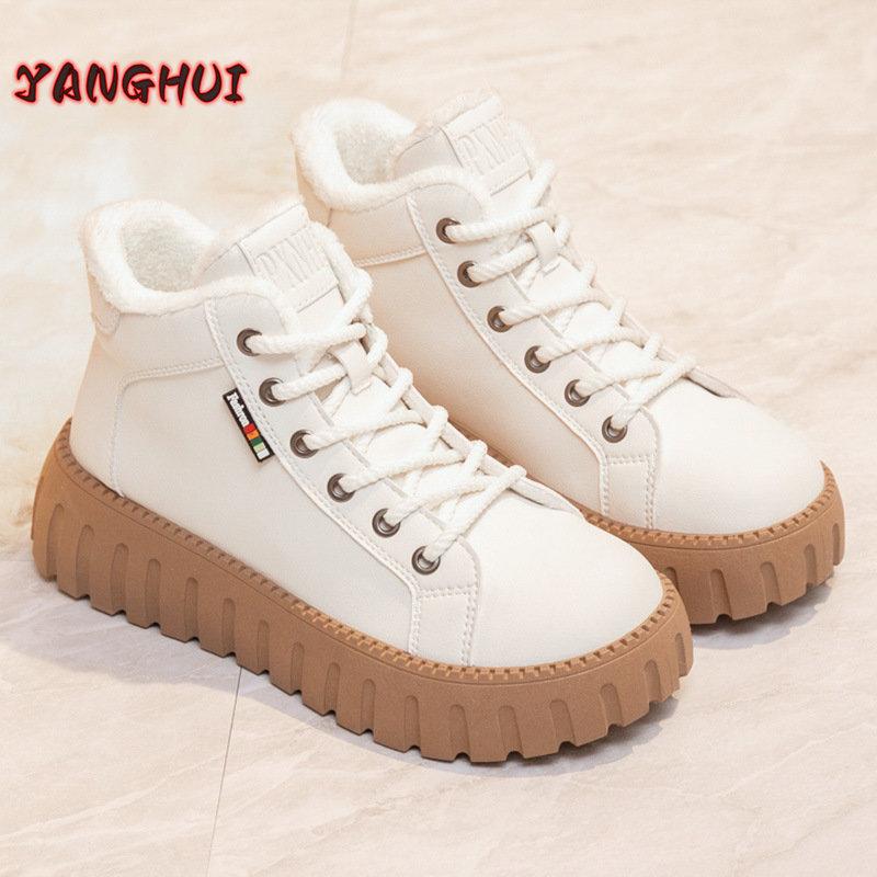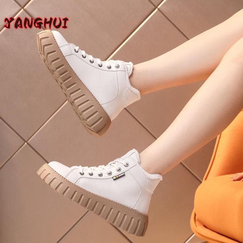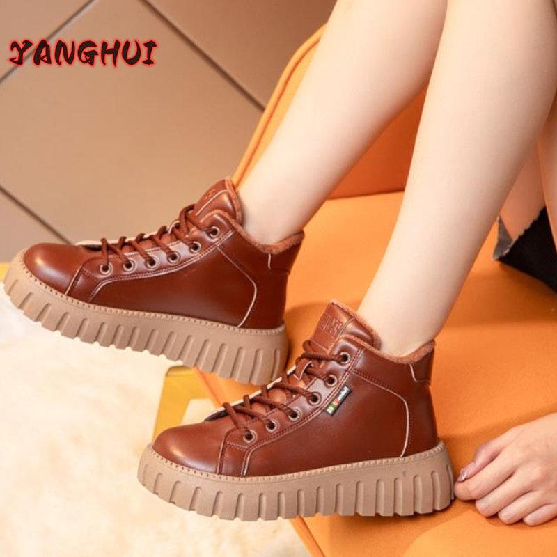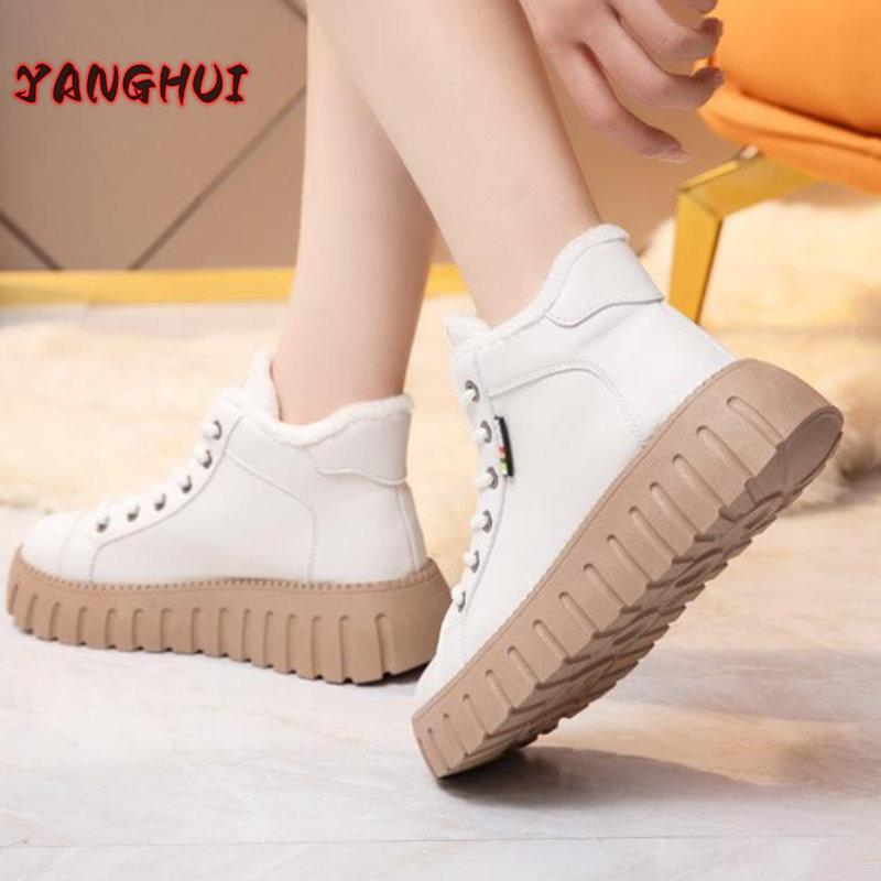Зимние новые модные женские ботинки, плюшевые, на шнуровке, однотонные, большого размера, теплые и удобные, кроссовки на мягкой подошве Zapatillas