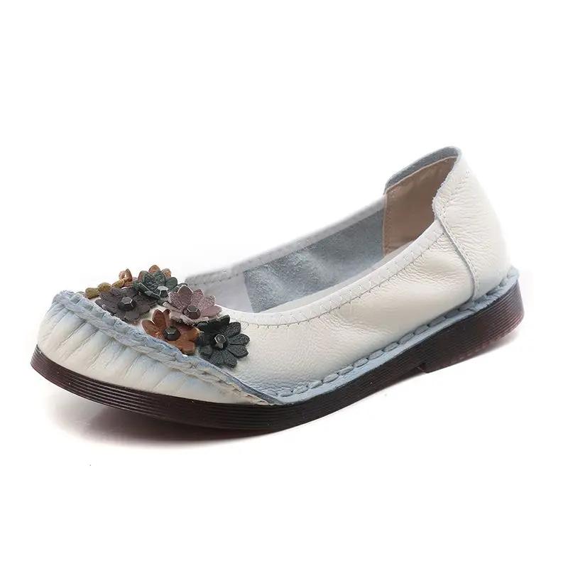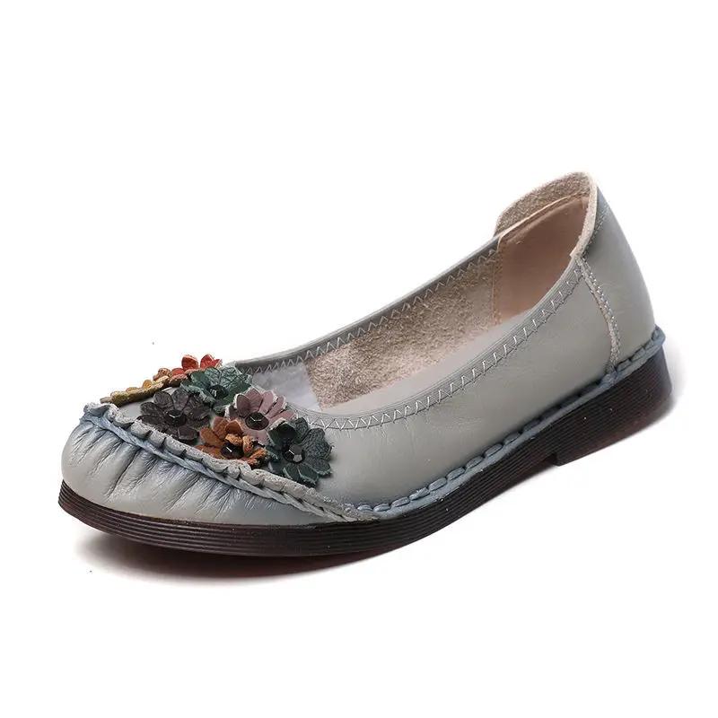 Мягкие ретро-заплатки из натуральной кожи на плоской подошве, женская повседневная обувь для ходьбы, женские мокасины с цветочным принтом для мамы, балетки из натуральной кожи