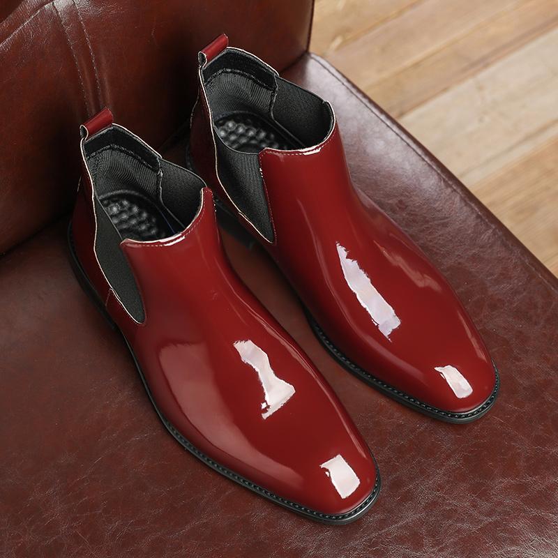 Модные роскошные глянцевые лакированные кожаные ботинки мужские ботинки челси мужские классические ботильоны деловые ботинки вечерние ботинки красные размеры 38-48