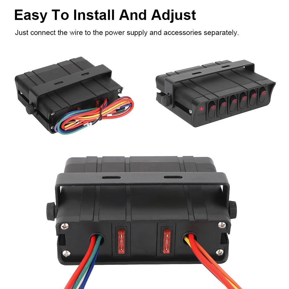 Водонепроницаемый со светодиодным индикатором для автомобилей, транспортных средств, караванов, панель переключателей 12-24 В, 20 А, 6-клавишный кулисный переключатель, универсальная коробка
