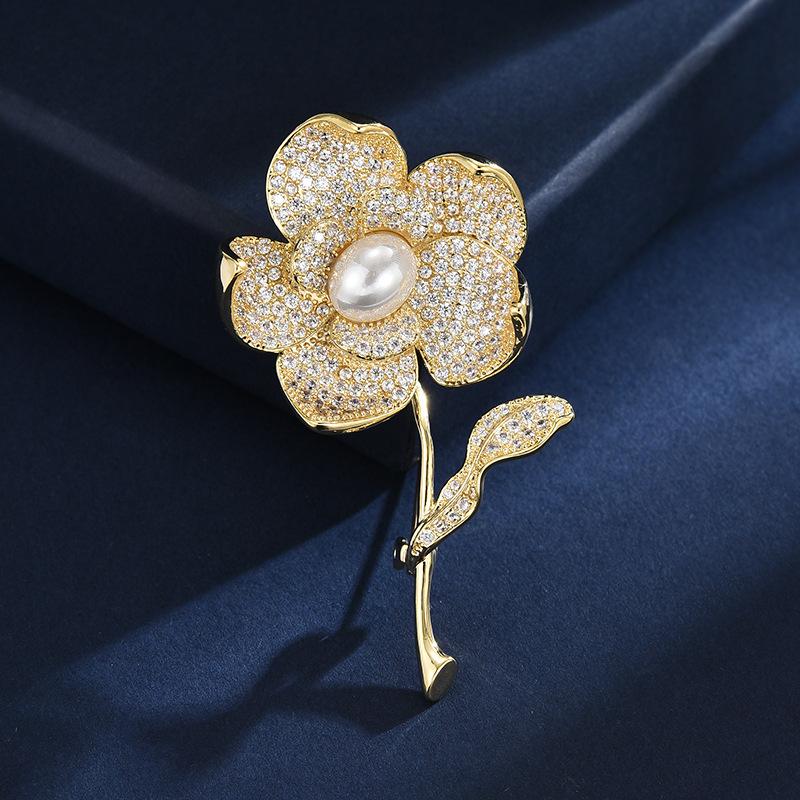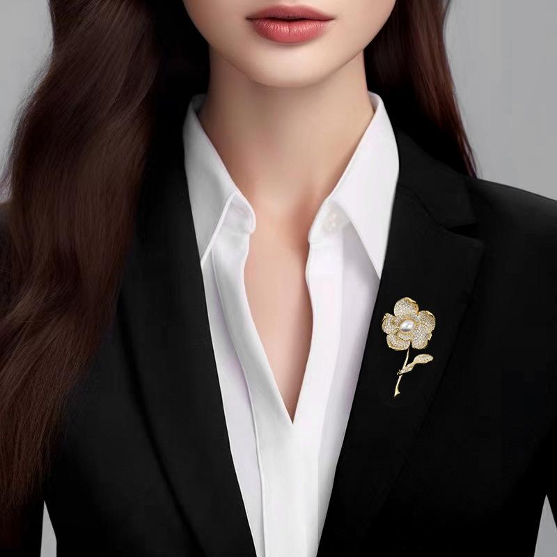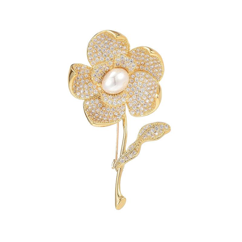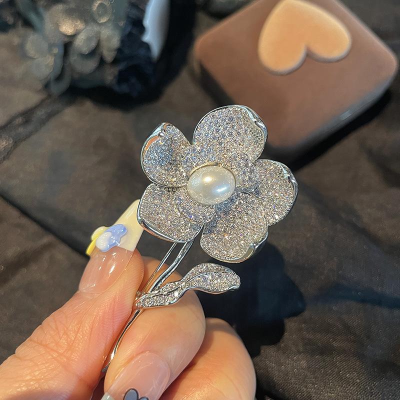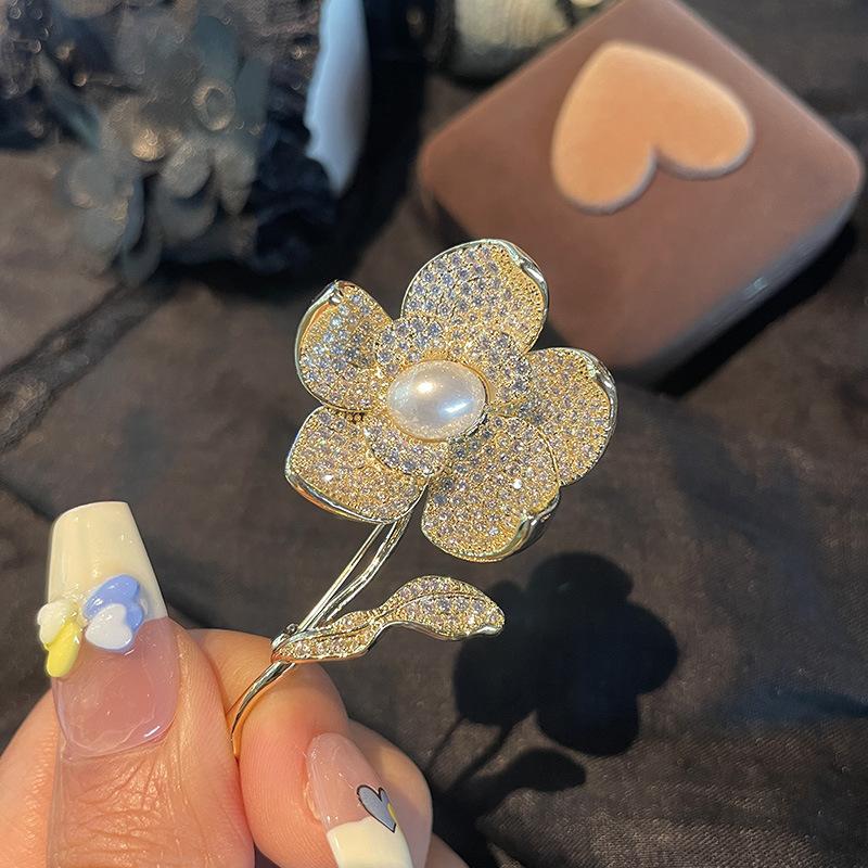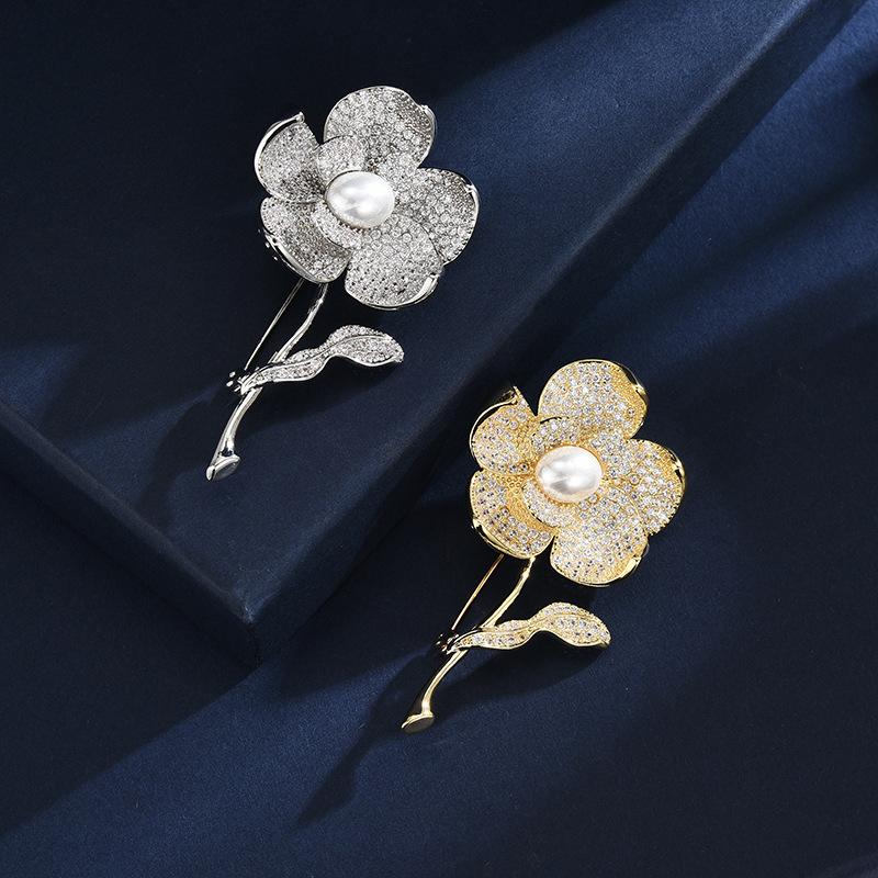 Высококачественная роскошная микро-инкрустированная брошь-цветок из циркония с жемчугом, трехмерная булавка для корсажа в виде камелии, аксессуары для платья, легкая роскошь