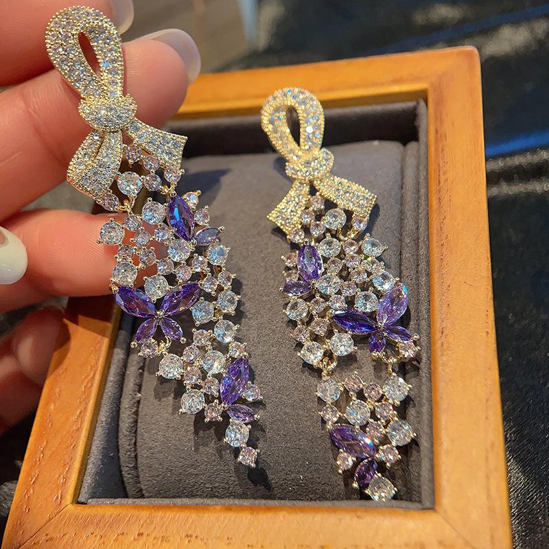 Лук Листья Купить Серьги Темперамент Платье Высокое ювелирное изделие Серьги Женские Цвет Циркон