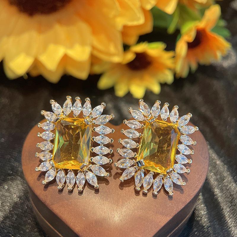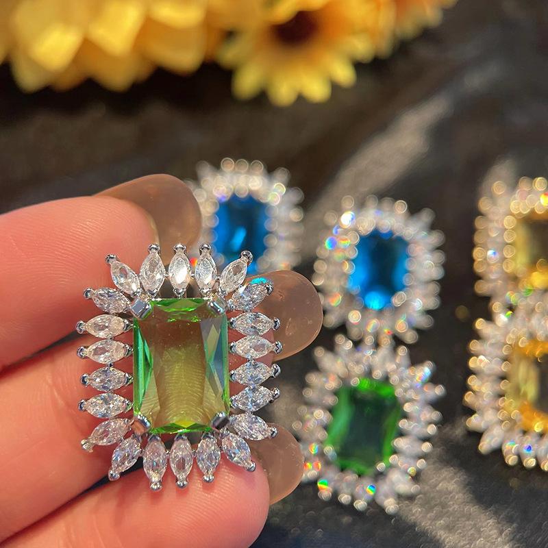 Популярные серьги Ювелирные изделия с драгоценными камнями, цветные серьги-гвоздики, женские аксессуары для платьев высокого класса