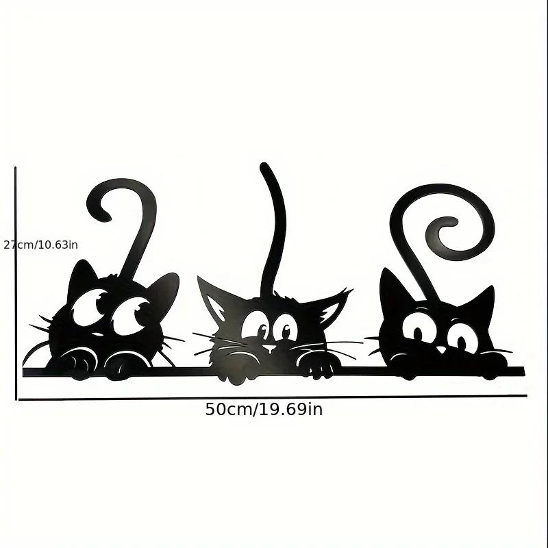 1 шт. Металлический декор для стен - Черные три толстокожих кота, Железная проволока, Подвесное украшение для стен