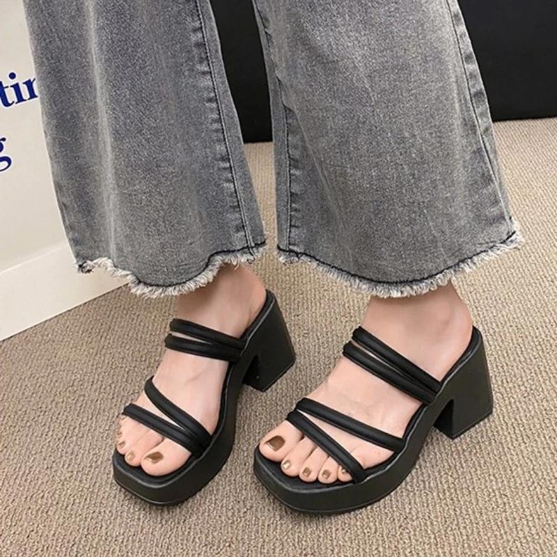 Тапочки повседневные туфли с заклепками женские 2024 мюли на каблуке Pantofle резиновые шлепанцы роскошные летние мягкие высокие новые гавайские металлические украшения — купить товар онлайн с бесплатной доставкой по всему миру!