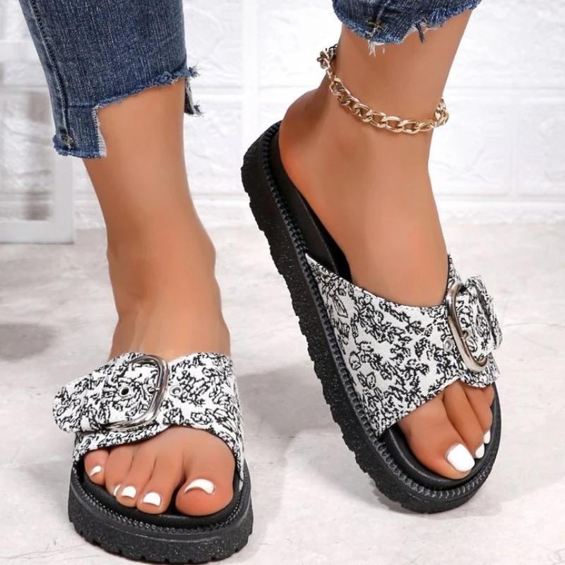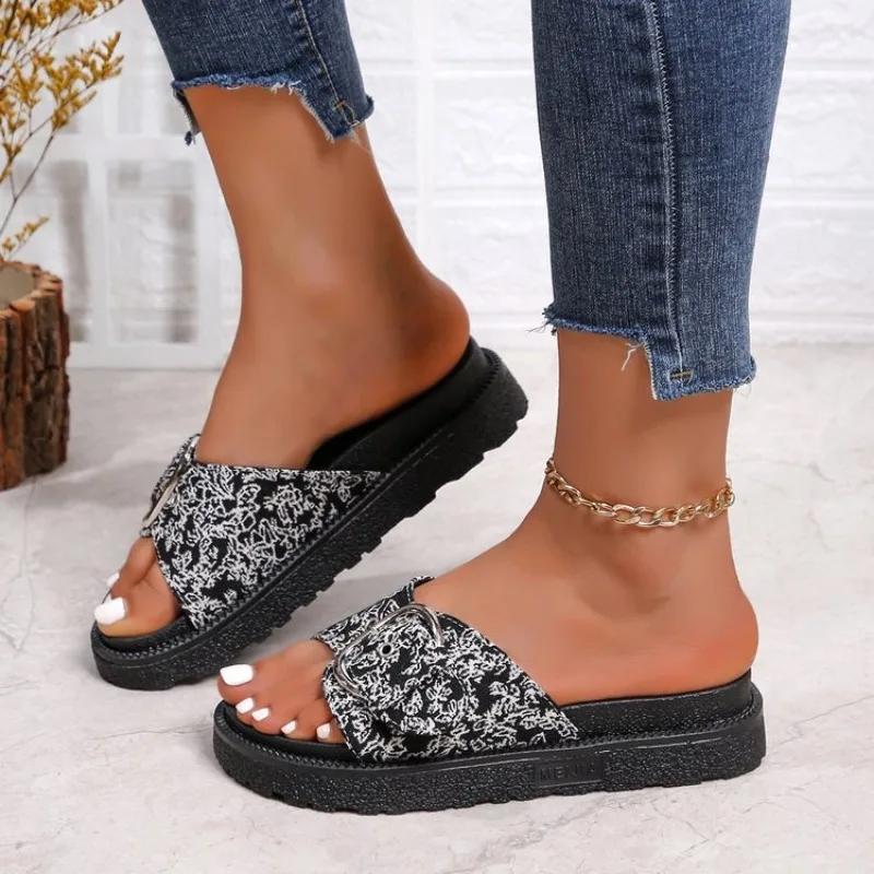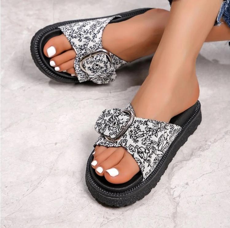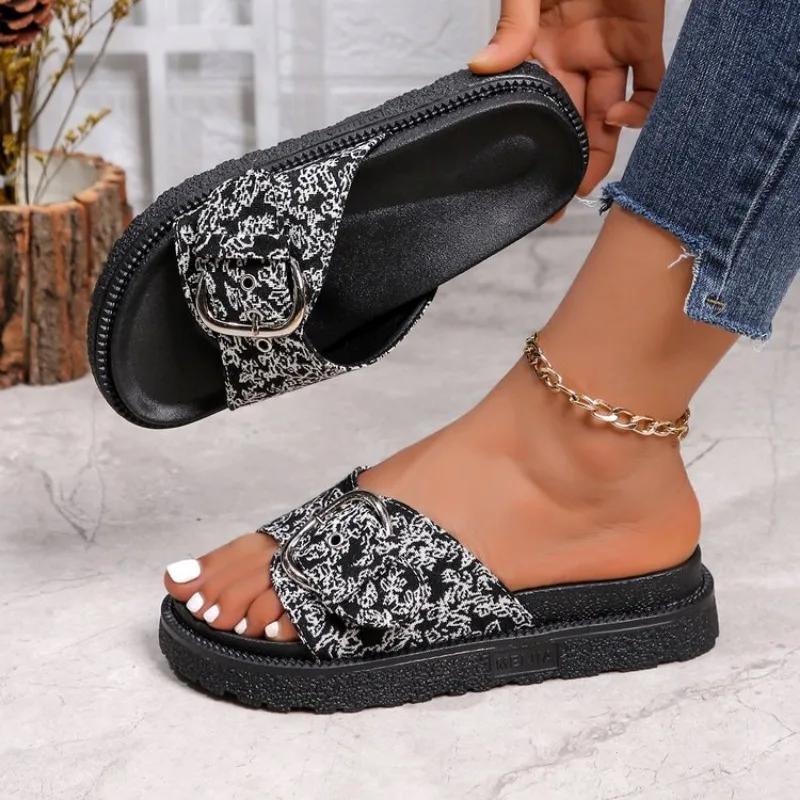2024 модные заклепки пряжки плоские тапочки обувь для женщин летний отдых удобные прогулочные сандалии шлепанцы плюс размер черный