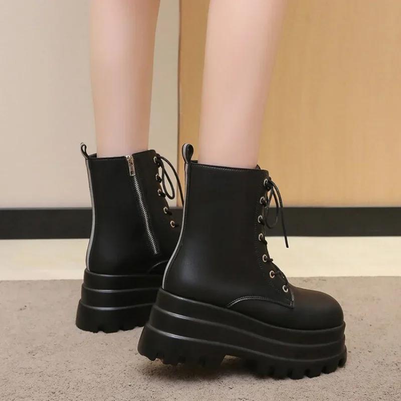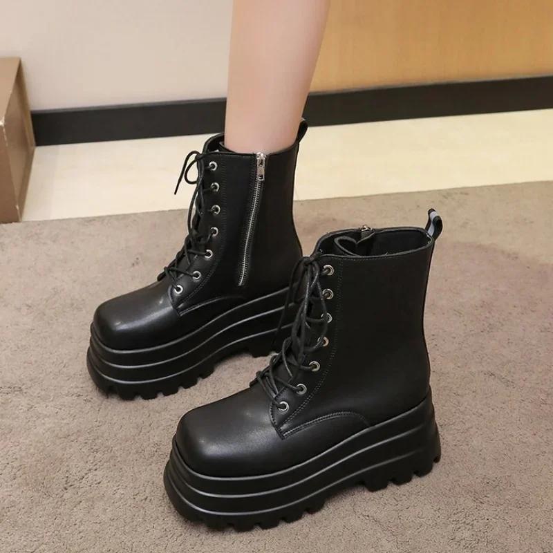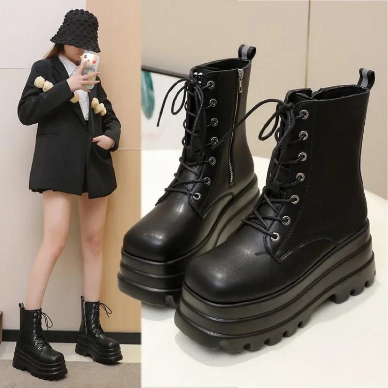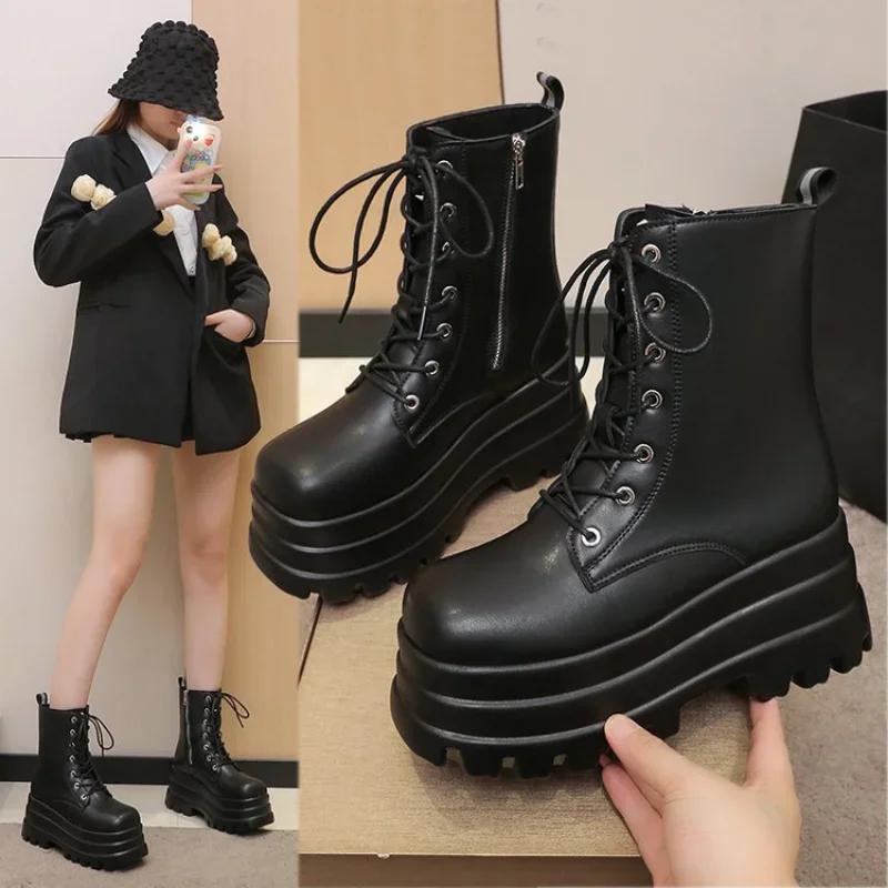 2024 Горячие модные ботинки на платформе с толстым каблуком, ботильоны в стиле панк-готика, классные женские ботинки, осенняя уличная женская обувь