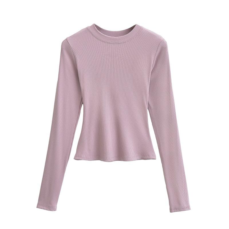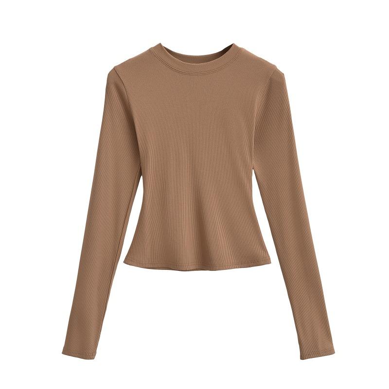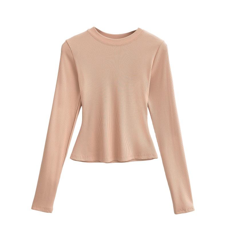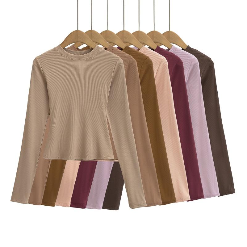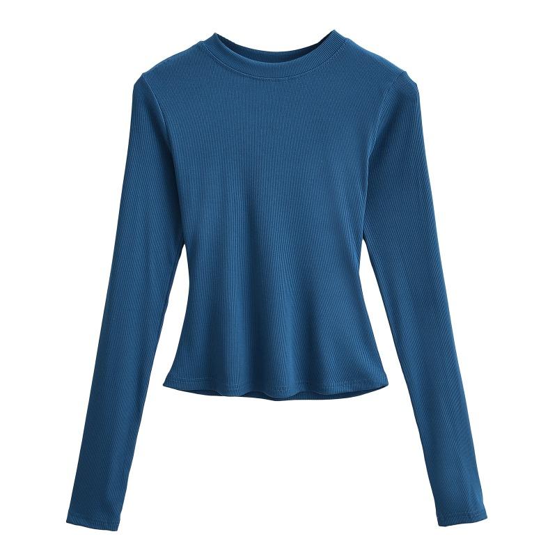 Весна и осень Новая базовая рубашка с круглым вырезом Женская обтягивающая футболка с длинными рукавами Приталенный однотонный топ