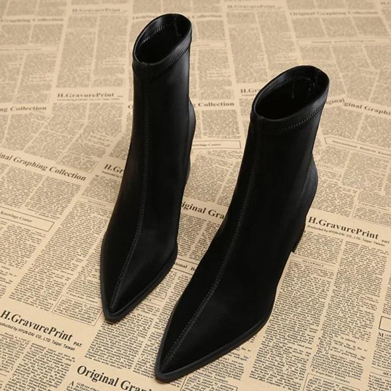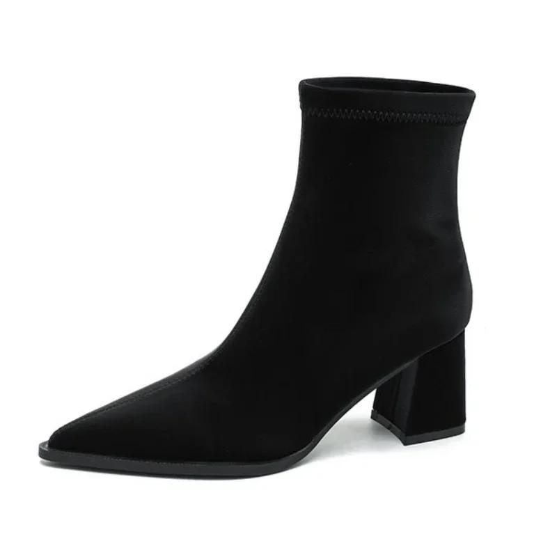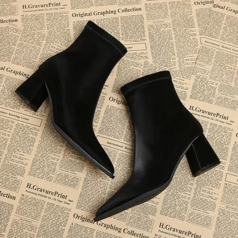 Сексуальные женские зимние ботильоны на высоком каблуке с острым носком из замши, массивные модные туфли, зима 2024, новый тренд, туфли-лодочки «Челси» Botas Mujer