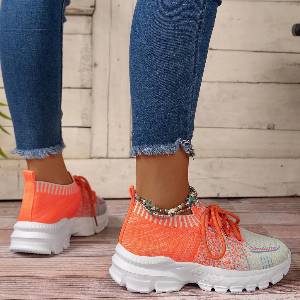 Кроссовки женские сетчатые эластичные трикотажные толстые мягкие подошвы женские повседневные дышащие спортивные на шнуровке Zapatos De Mujer лето 2024