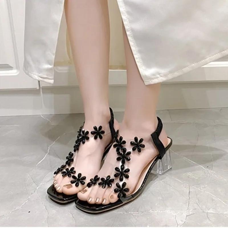 2024 Сандалии Женские Летние Новые Модные Женские Шикарные Цветы Стразы Прозрачные Босоножки С Открытым Носком Женские Туфли