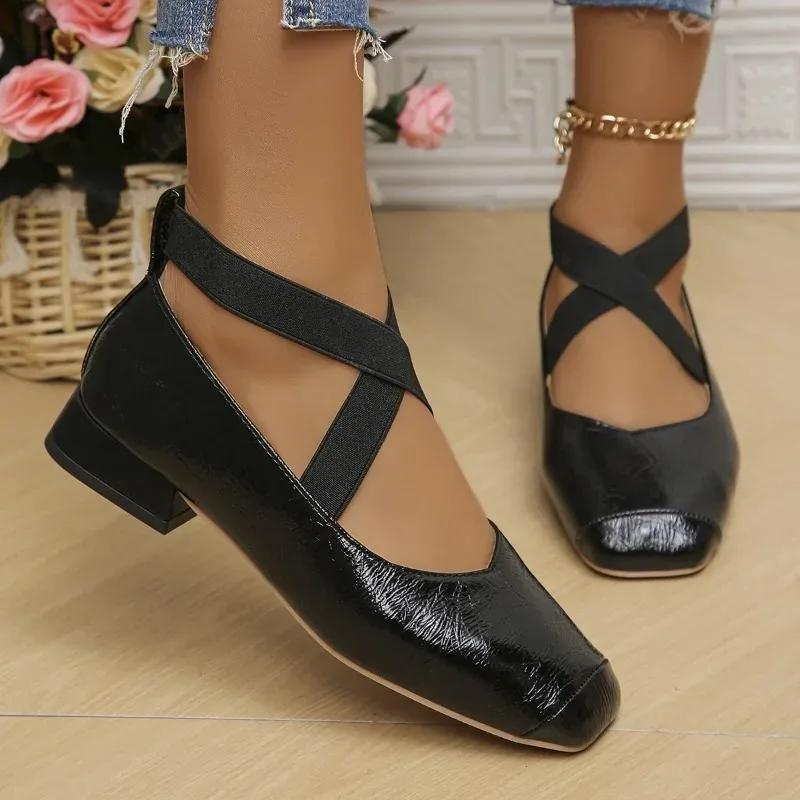 Женская обувь для вечеринок, выступлений, слипоны, новинка 2024 года, весна-осень, однотонные туфли-балетки с квадратной головкой для отдыха на открытом воздухе для женщин
