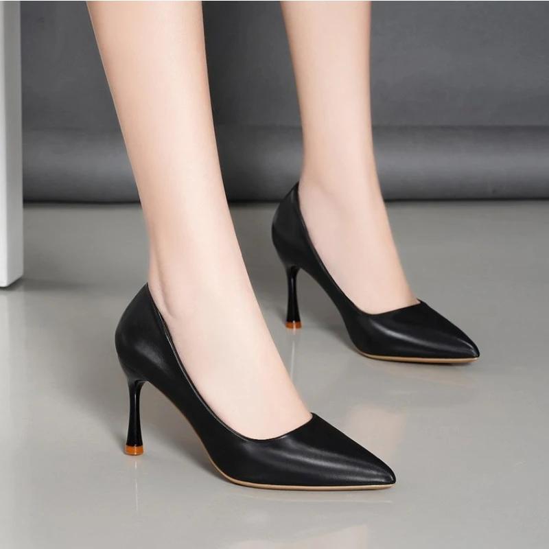 Женские туфли-лодочки Летние заостренные черные туфли для офиса и офиса на высоком каблуке Повседневные однотонные модные платья Сексуальные свадебные туфли Salto Alto Feminino