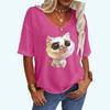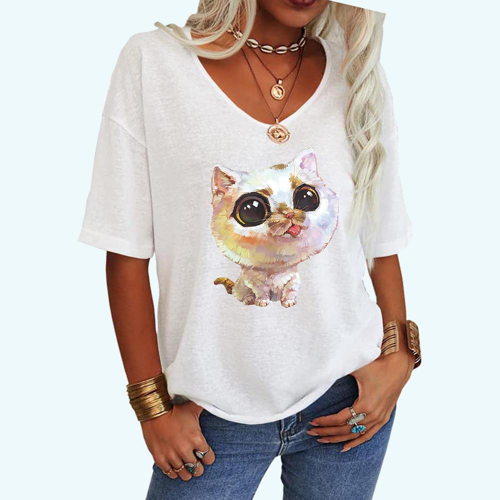 Женская модная футболка с принтом кота, летняя повседневная футболка с V-образным вырезом, свободная футболка с коротким рукавом