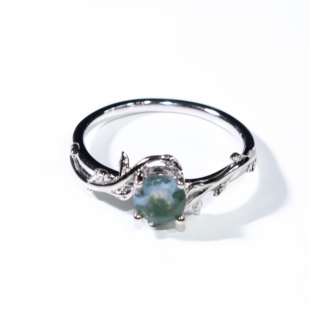 Круглое обручальное кольцо из мохового агата Кольца из мохового агата Sliver Promise