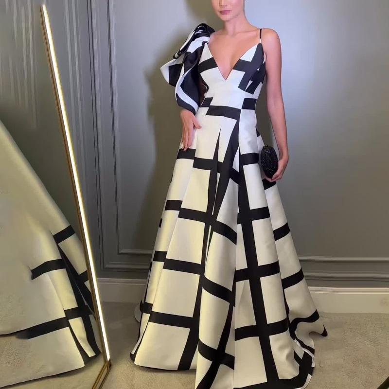 Модное длинное платье с геометрическим узором и высокой талией, элегантное женское вечернее платье, сексуальное женское вечернее платье без рукавов с открытой спиной — купить товар онлайн с бесплатной доставкой по всему миру!