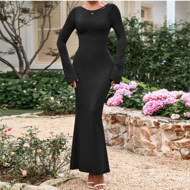 Женские платья осень-зима сексуальные элегантные облегающие с круглым вырезом и длинным рукавом