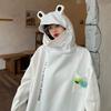 Осенне-зимние пары модный свитер с капюшоном в виде лягушки из утолщенного бархата