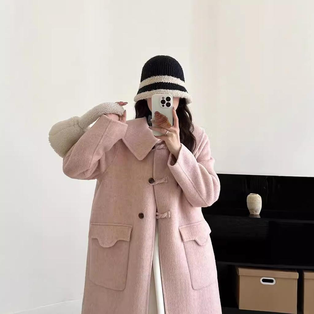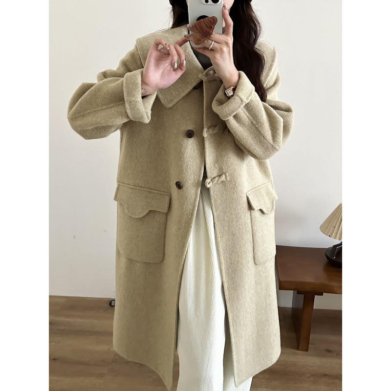 Двустороннее шерстяное кашемировое пальто с воротником «Милая кукла» Свободное и тонкое шерстяное пальто