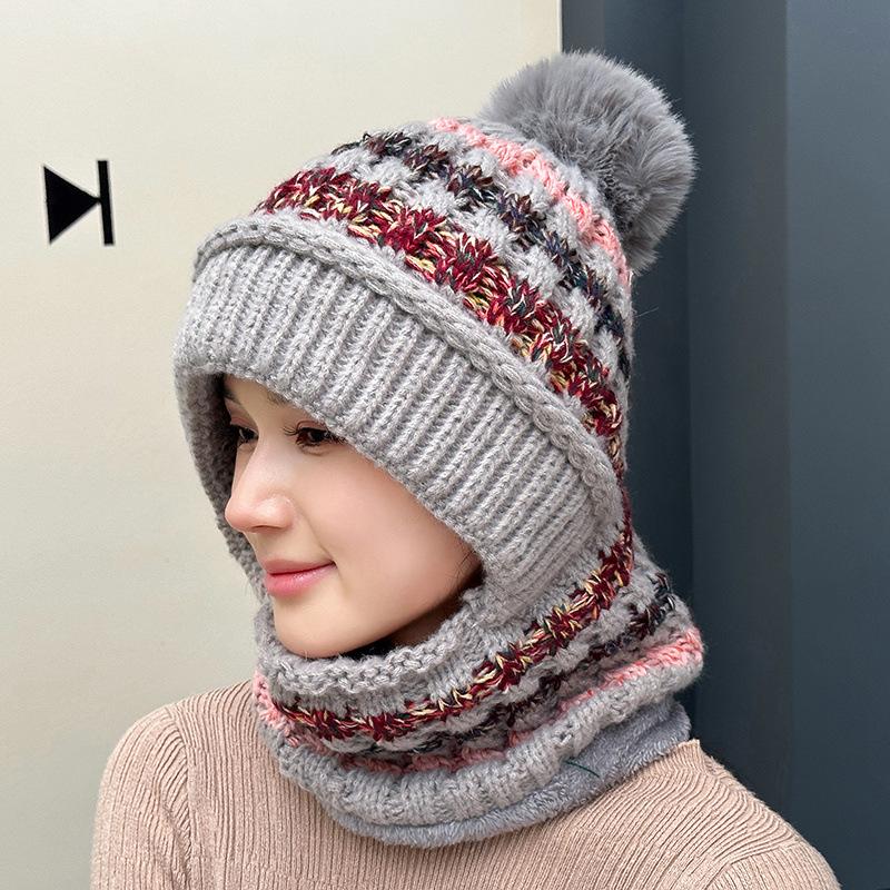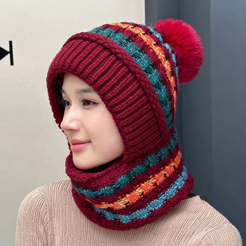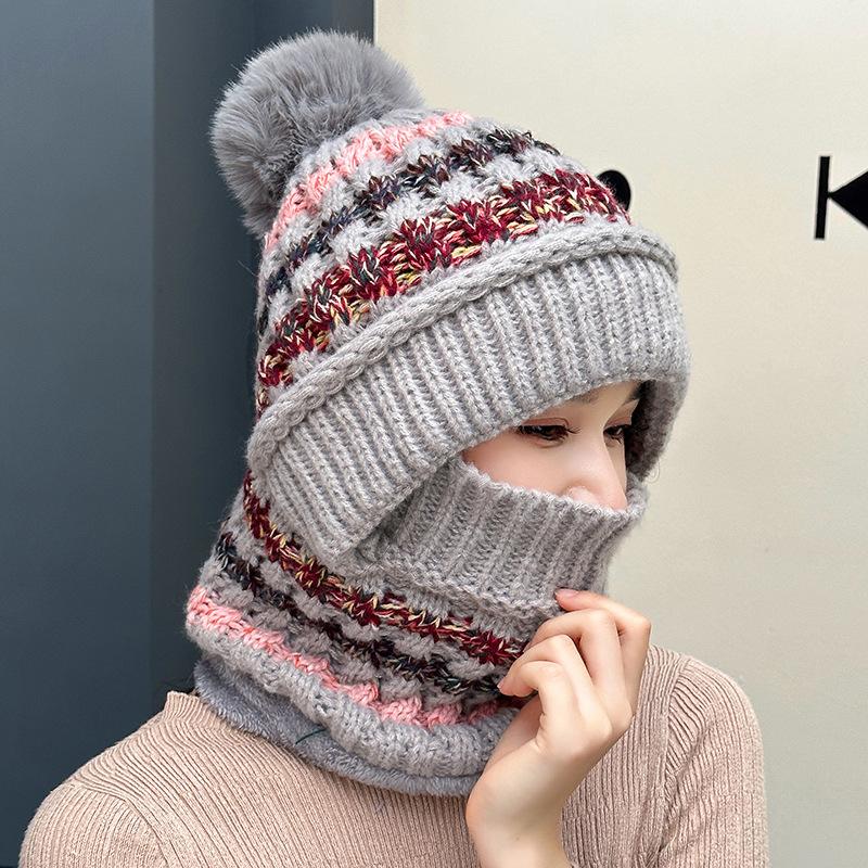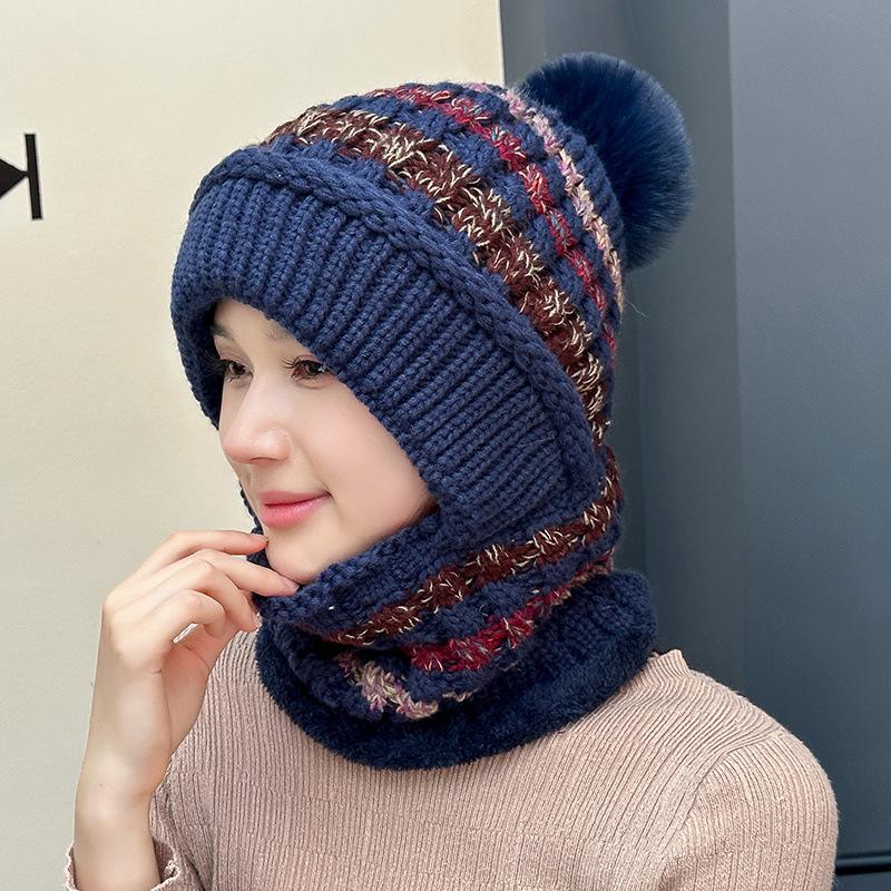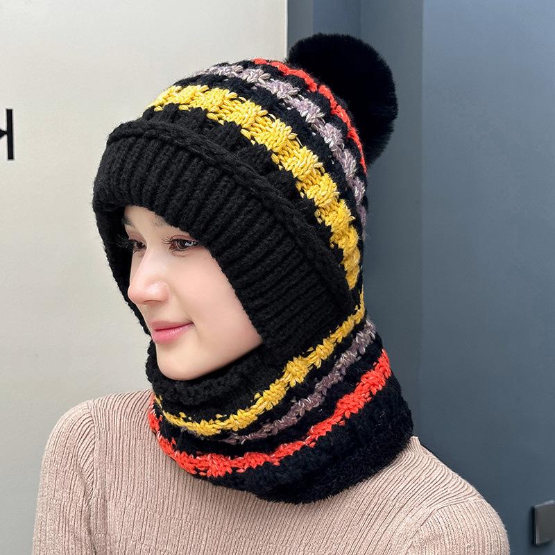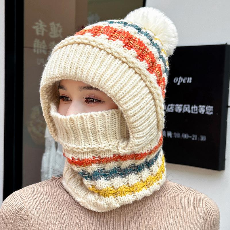 Шапка утолщенная вязаная шапка глушитель цельная шапка женская зимняя уличная утепленная цельная шапка полосатая