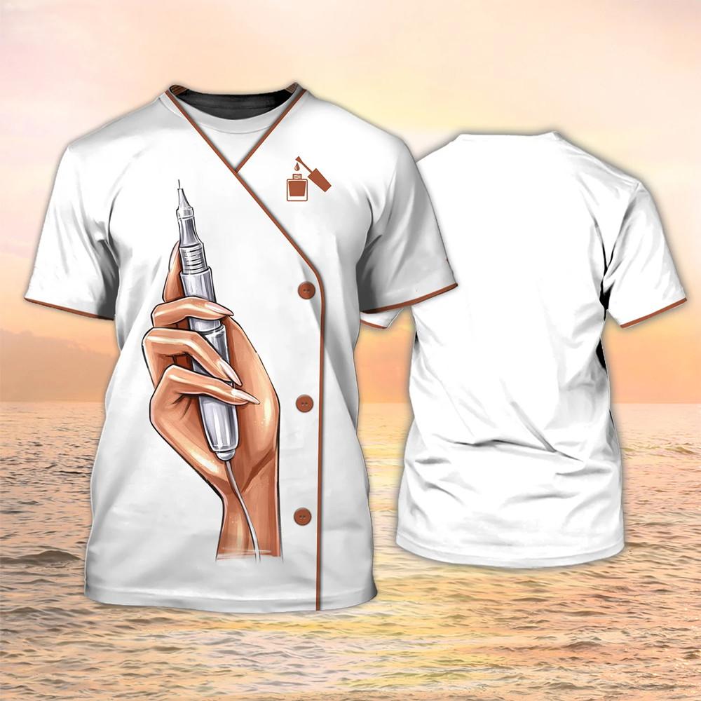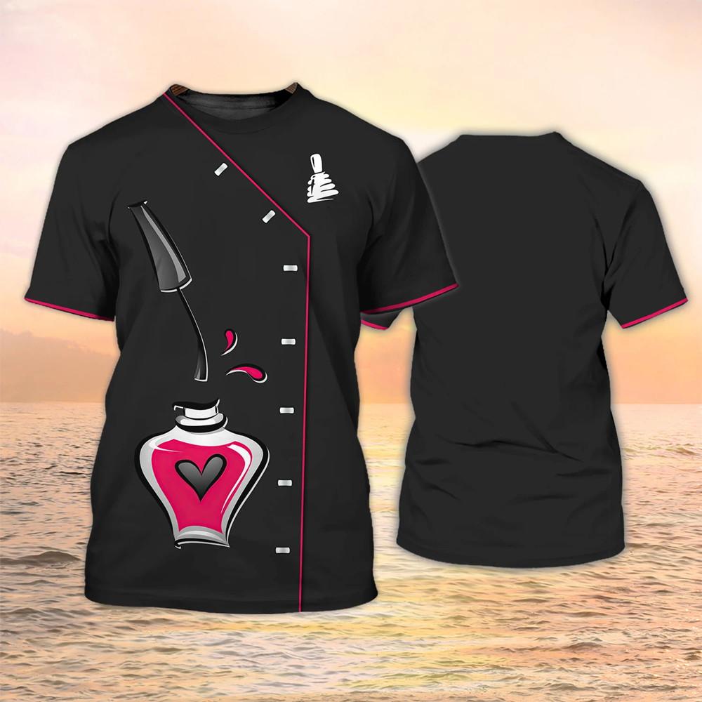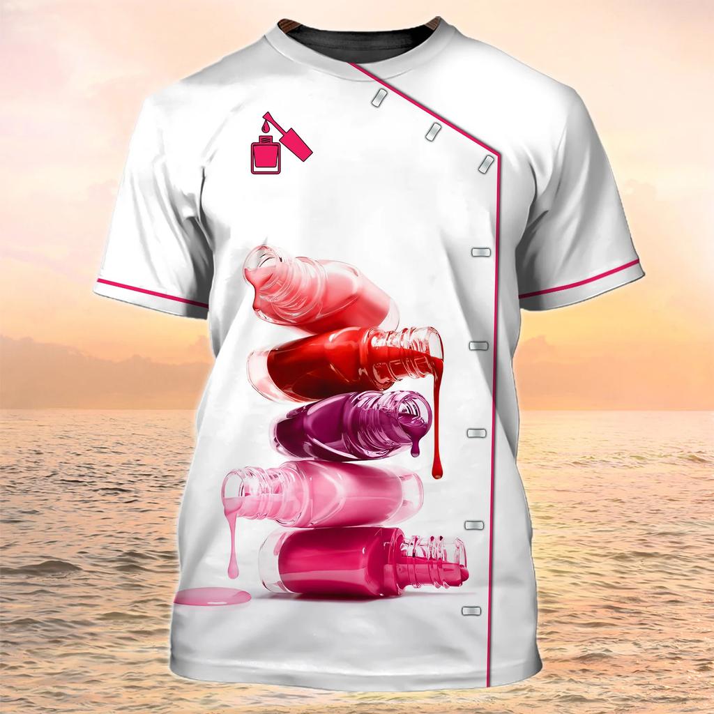 Летний модный пуловер, женские повседневные топы, маникюрная 3D-футболка для женщин, футболки с коротким рукавом в стиле Харадзюку с принтом лака для ногтей