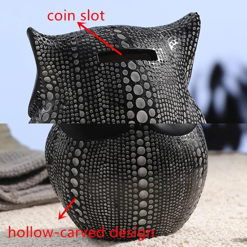 Копилка Сова из смолы Копилка для сбережений Взрослые фигурки Витрина магазина Украшения для офиса Аксессуары Органайзер для монет