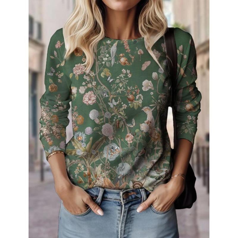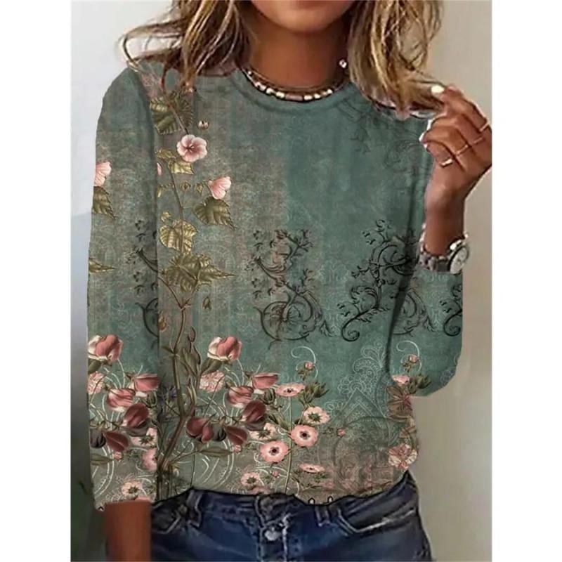 Новые женские футболки с цветочным узором, топы с 3D-принтом, повседневный свитер с круглым вырезом и длинным рукавом, одежда 2000 года для девочек, модная толстовка